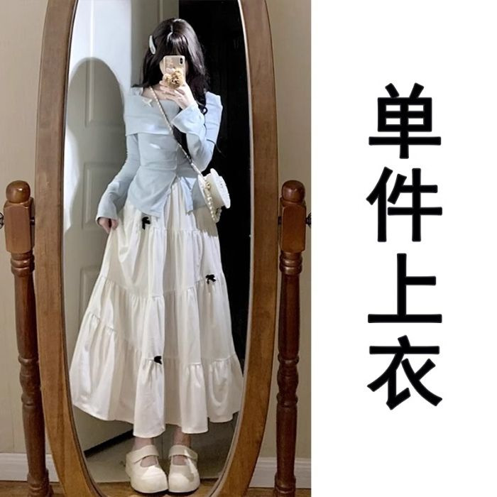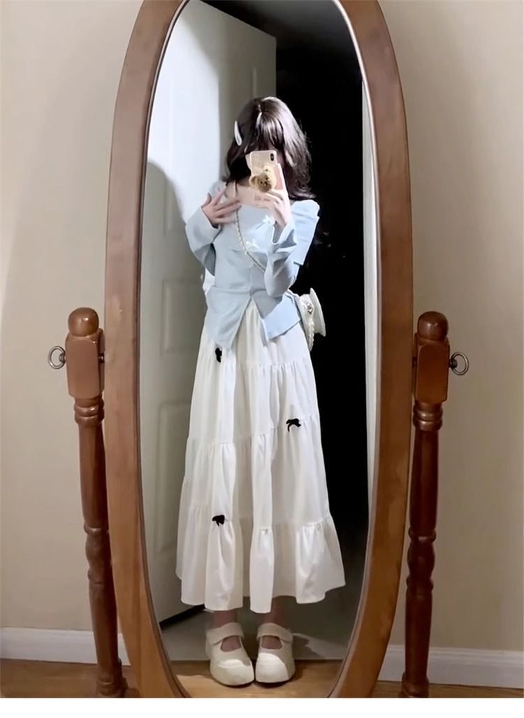 봄철 프렌치 스타일 블루 긴팔 원피스 여성 2026 신상 키 작은 분들을 위한 롱 원피스 고급스러운 슈트 드레스스토어 가기
