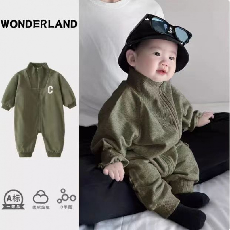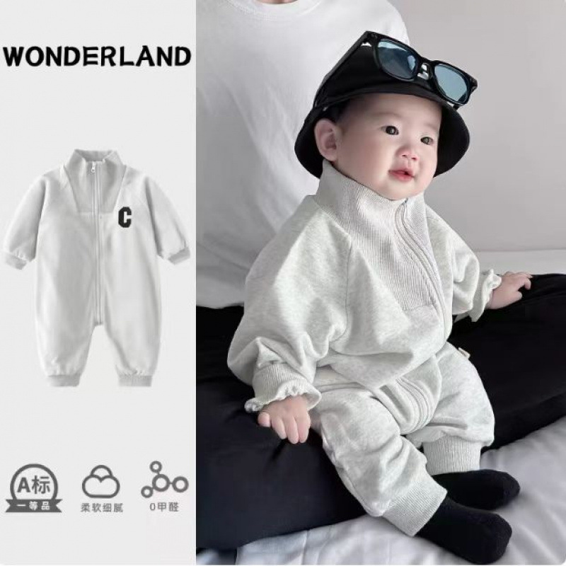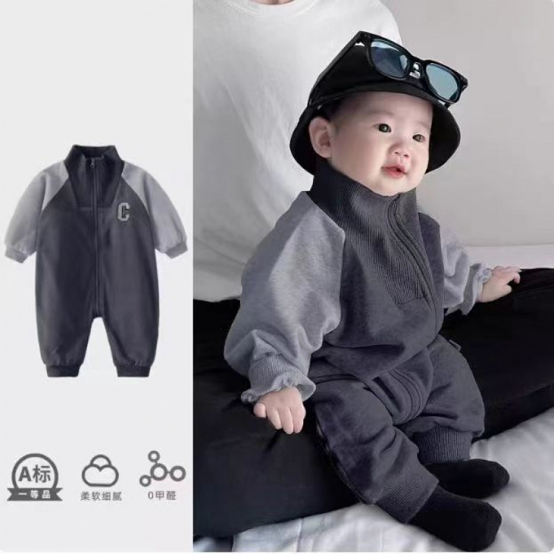 아기 점프 수트 가을과 겨울 기모 한국식 아기의 서양식 지퍼 세트 봄 긴팔 세트 세트 등반 세트스토어 가기