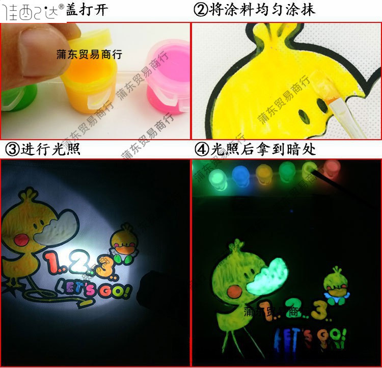 슈퍼 밝은 어린이 손으로 그린 빛나는 코팅 빛나는 페인트 방수 빛나는 안료 물 기반 형광 분말 오래 지속되는 형광 액체스토어 가기