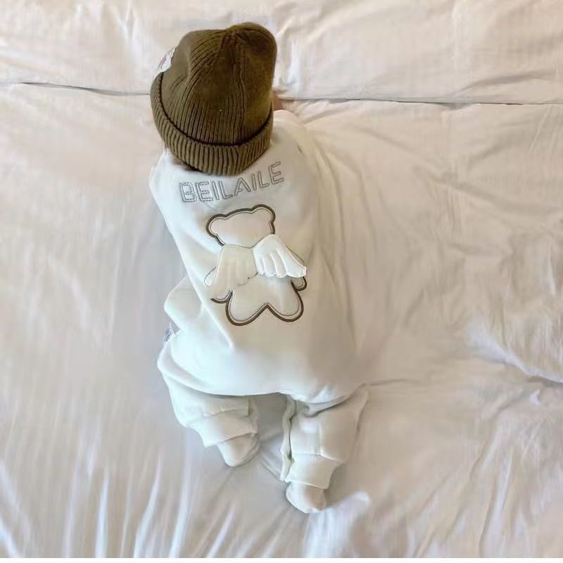 • 흰색 입체 날개 천사 곰 자수 긴 소매 점프 슈트 봄, 가을