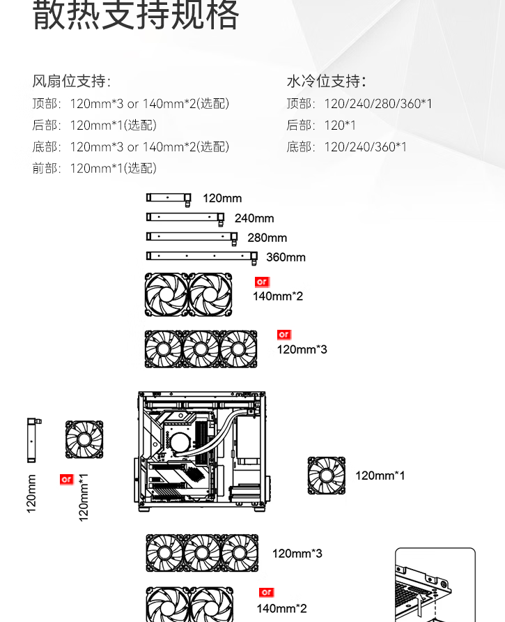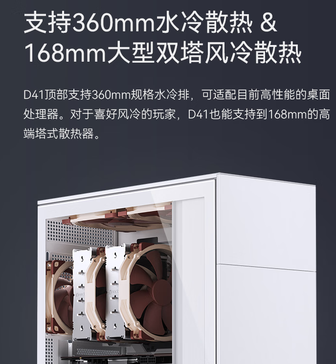 乔思伯(JONSBO)松果D41 标准版 ATX机箱(双360冷排/ATX电源/Type-c Gen2 10Gbps+/垂直风道/长显卡)