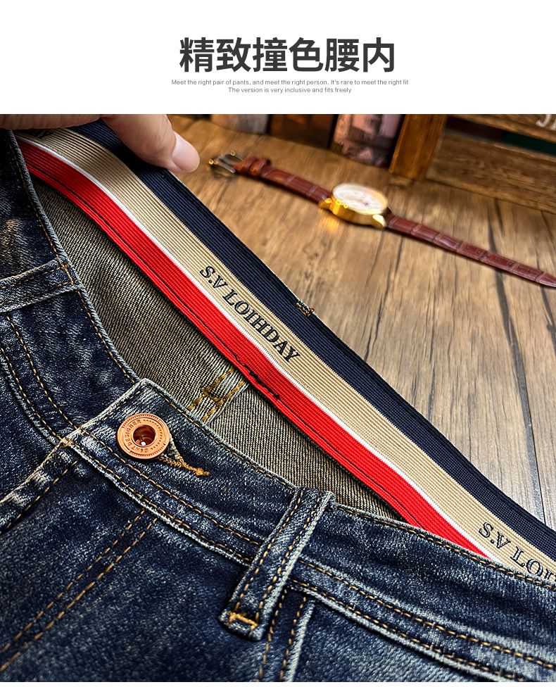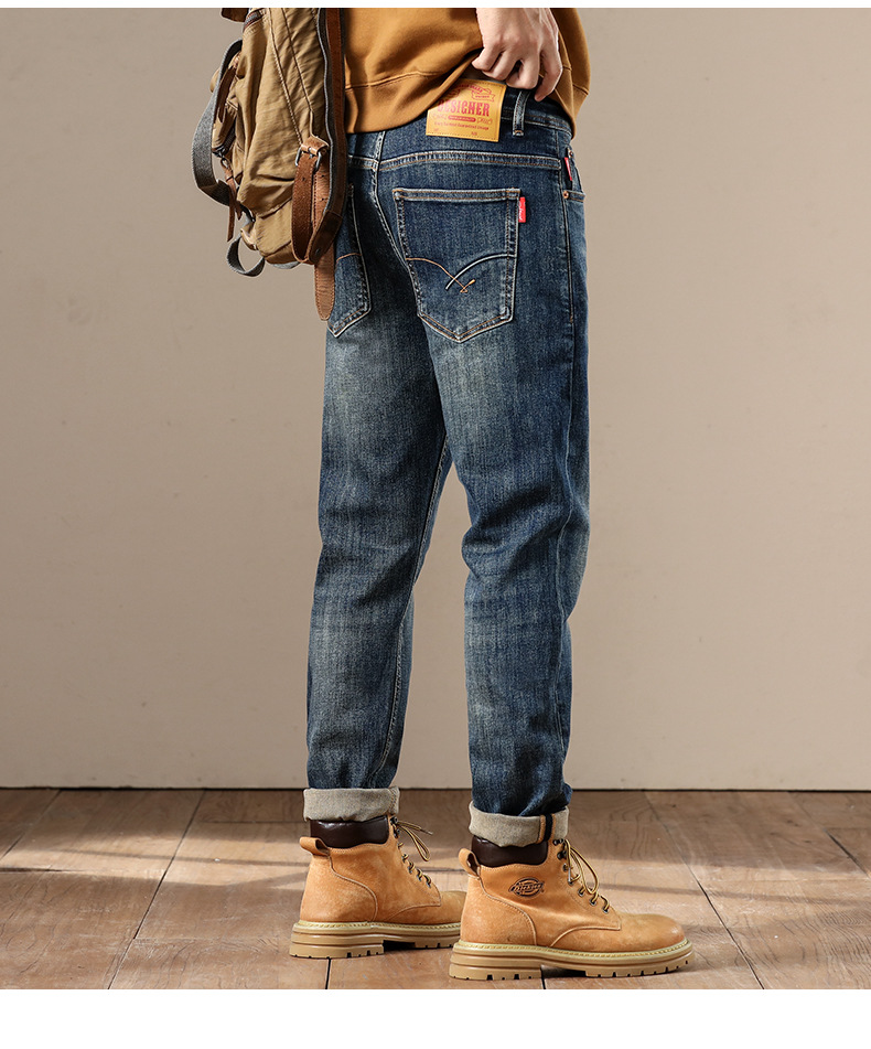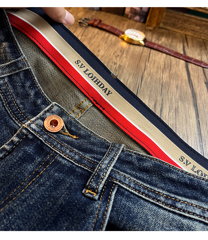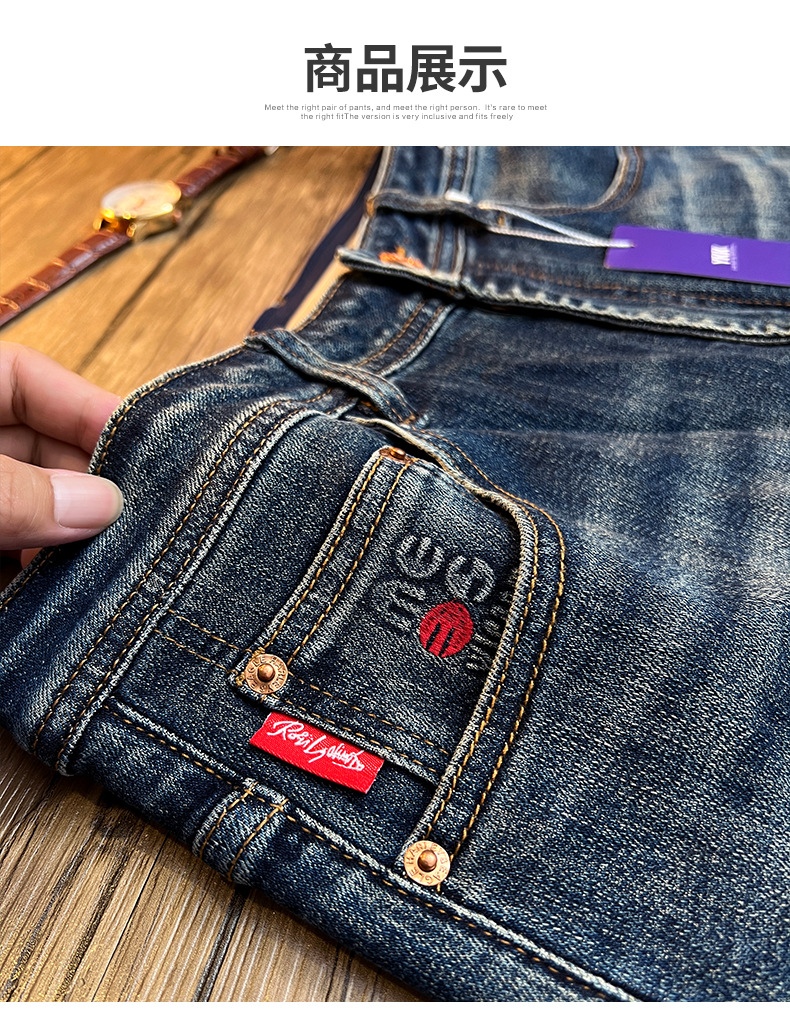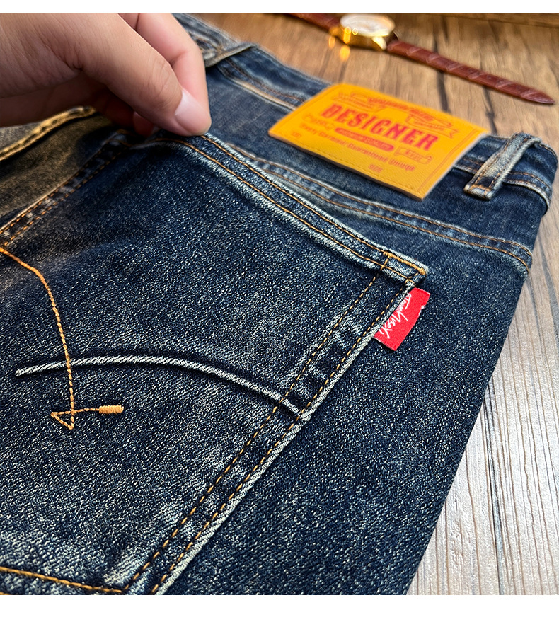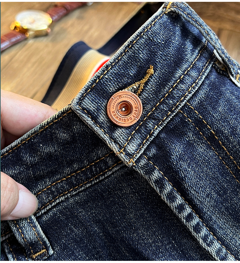 브랜드 라이트 럭셔리 하이 엔드 남성용 스트레치 청바지 봄 새로운 도착 슬림 핏 슬리밍 트렌디 브랜드 레트로 남성용 소형 스트레이트 바지스토어 가기