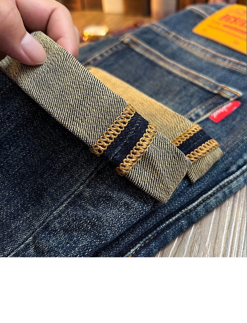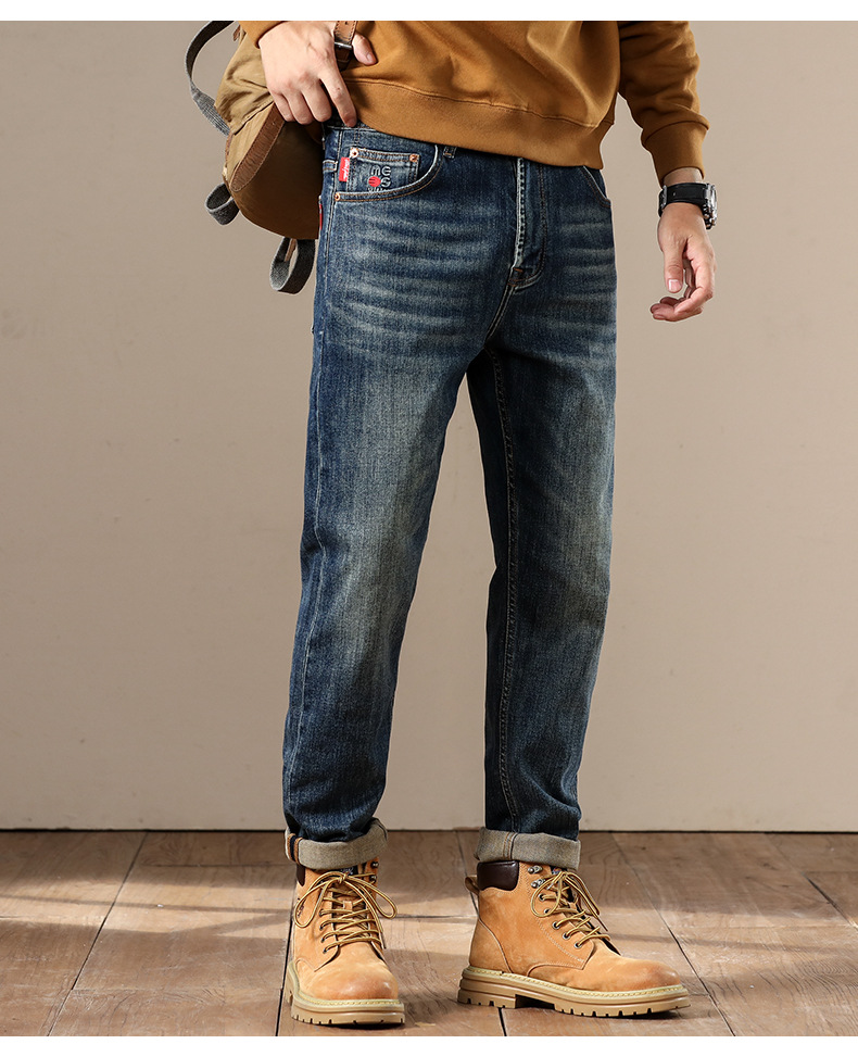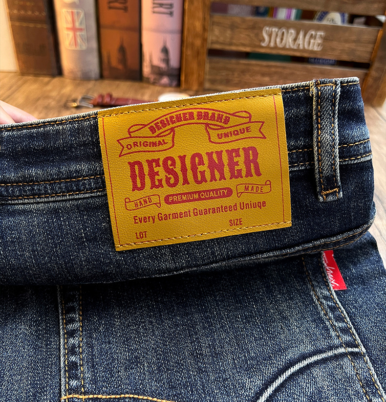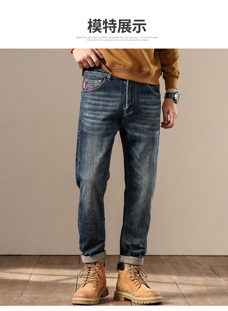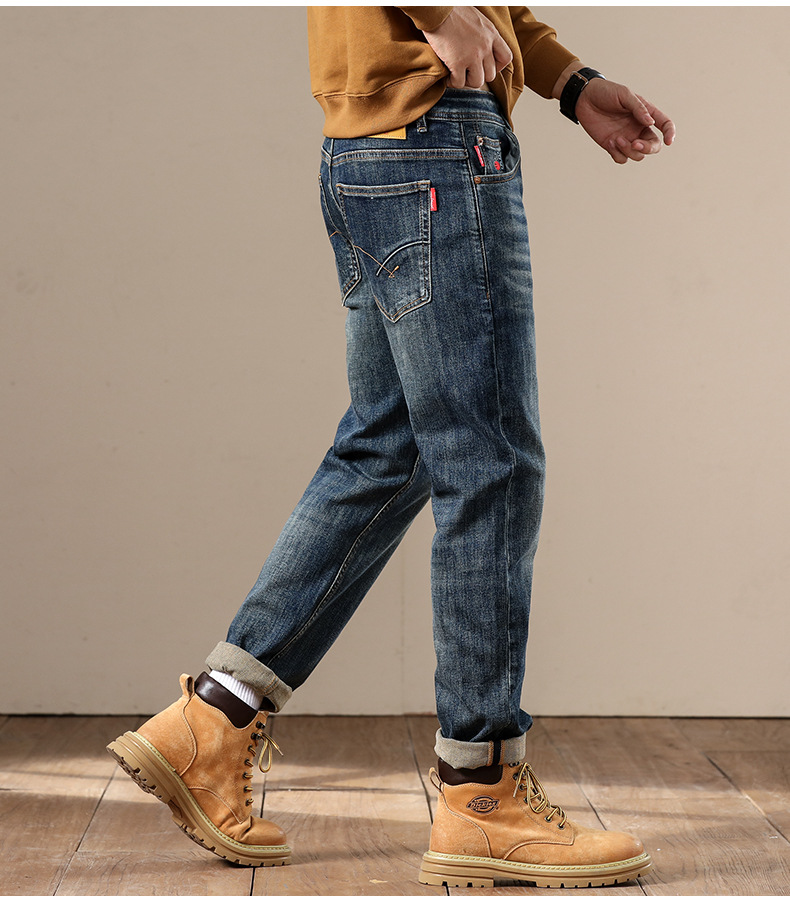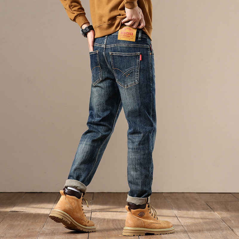 브랜드 라이트 럭셔리 하이 엔드 남성용 스트레치 청바지 봄 새로운 도착 슬림 핏 슬리밍 트렌디 브랜드 레트로 남성용 소형 스트레이트 바지스토어 가기