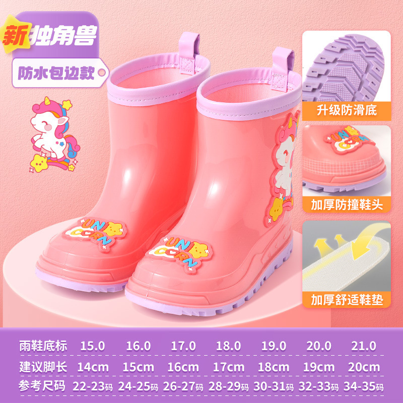 어린이 비 부츠 소년과 소녀 아기 장화 비 슬립 방수 어린이 만화 중간 튜브 로핑 학생의 물 신발