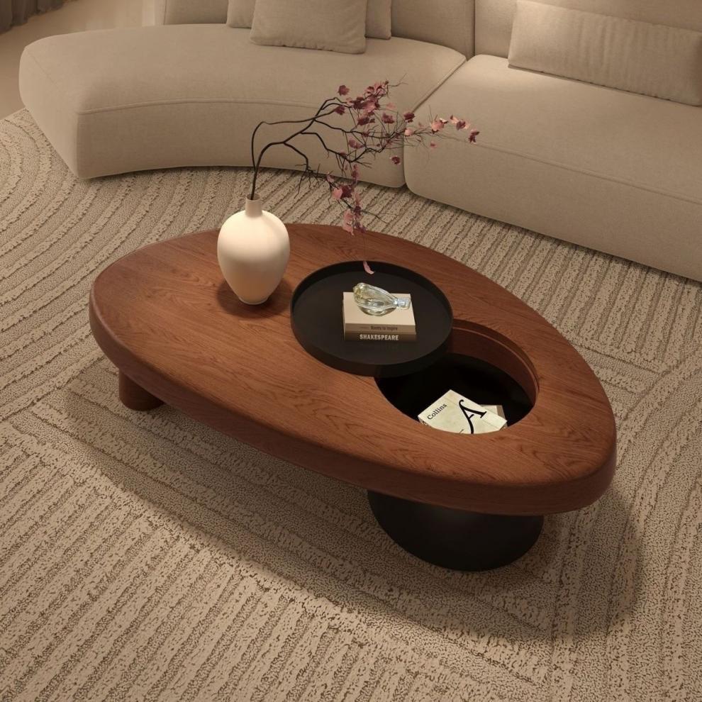 조용한 스타일의 단단한 나무 차 테이블 차 테이블 집 거실 2025 디자이너 새로운 스타일 간단한 창조적 인 작은 아파트