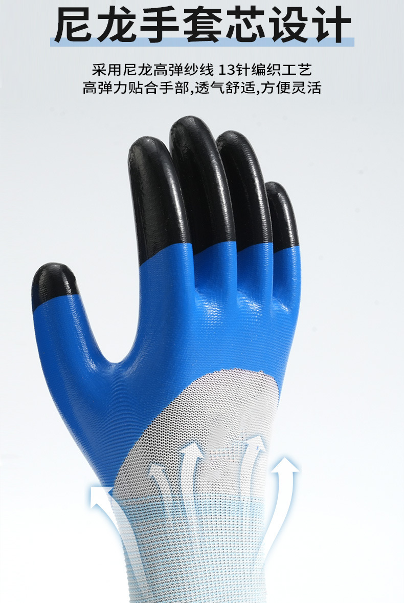니트릴 13 핀 장갑 미끄럼 방지 내마모성 건설 현장 작업 벽돌 양각 장갑 통기성 고무 노동 장갑스토어 가기