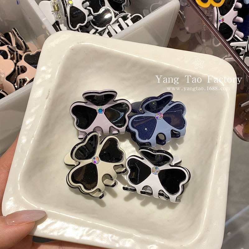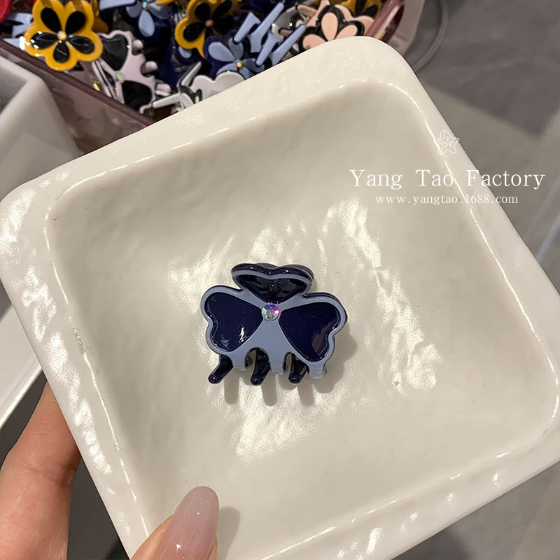 한국 스타일 간단한 Acetic 꽃 헤어 클립 한국 클로버 클립 스몰 사이즈 공주 헤드 뱅 헤어 클립 헤어 액세서리스토어 가기