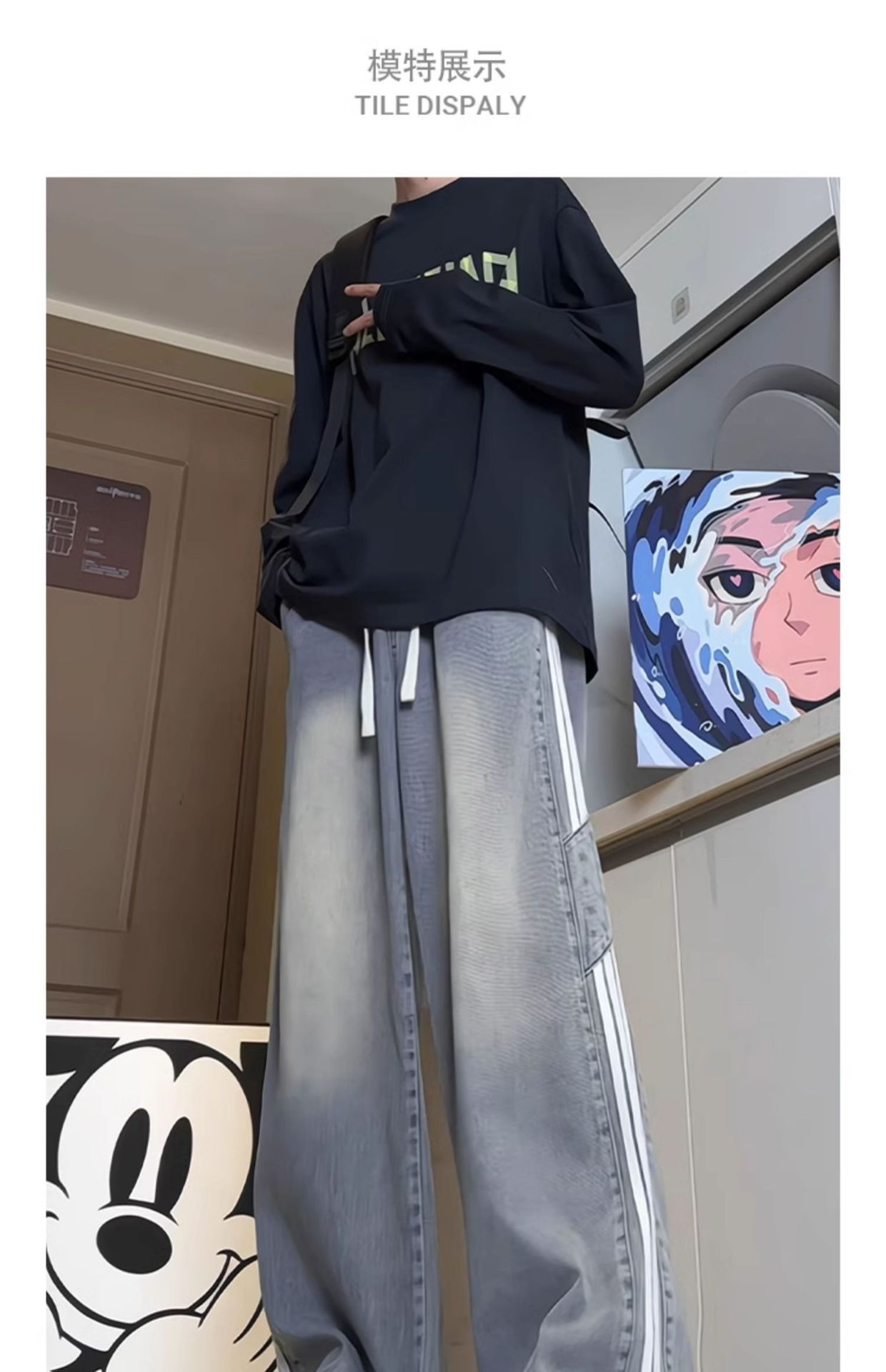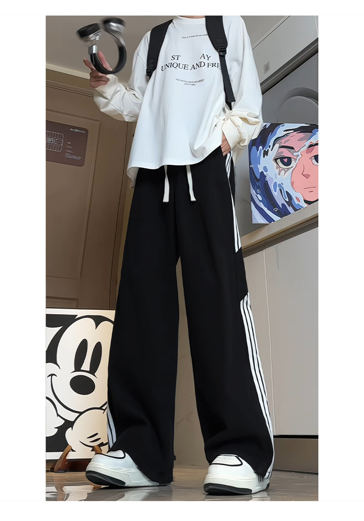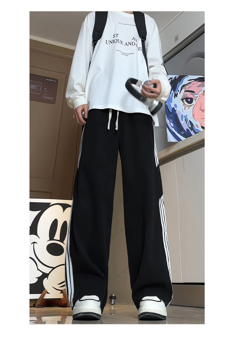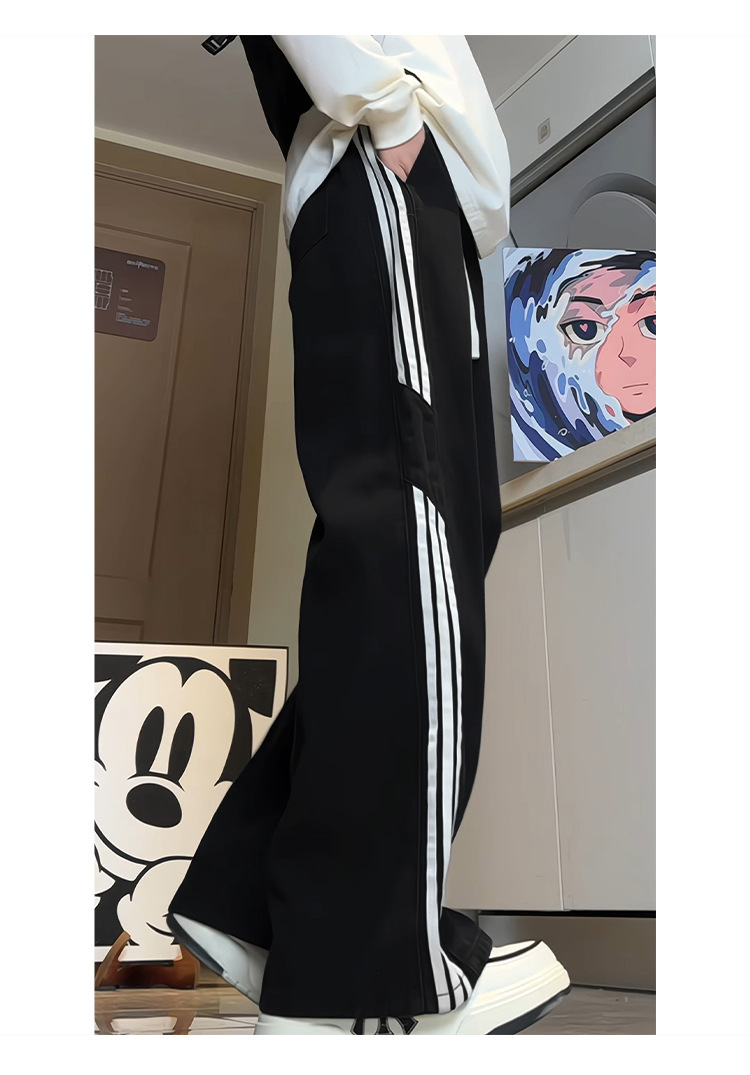 미국식 3 바 스트라이프 청바지 남성용 틈새 디자인 감각 하이 스트리트 분위기 바지 스트레이트 느슨한 와이드 레그 팬츠 패션스토어 가기
