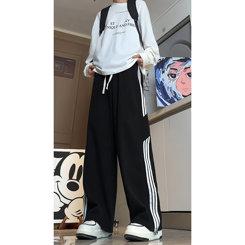 미국식 3 바 스트라이프 청바지 남성용 틈새 디자인 감각 하이 스트리트 분위기 바지 스트레이트 느슨한 와이드 레그 팬츠 패션
