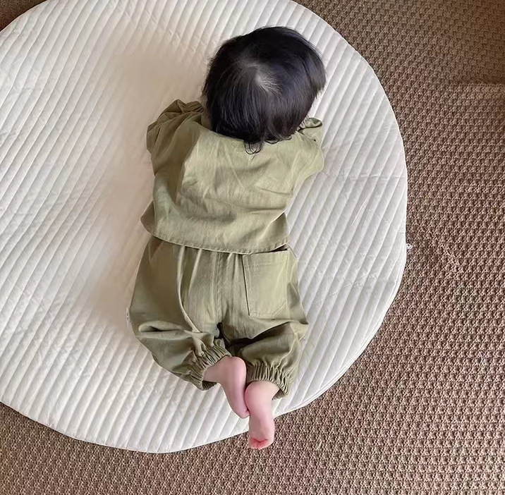 아기 어린이 봄 제트 수트 2023 새로운 아기 손수건 작업복 한국 스타일 제트 수트 소년 소녀 제트 수트