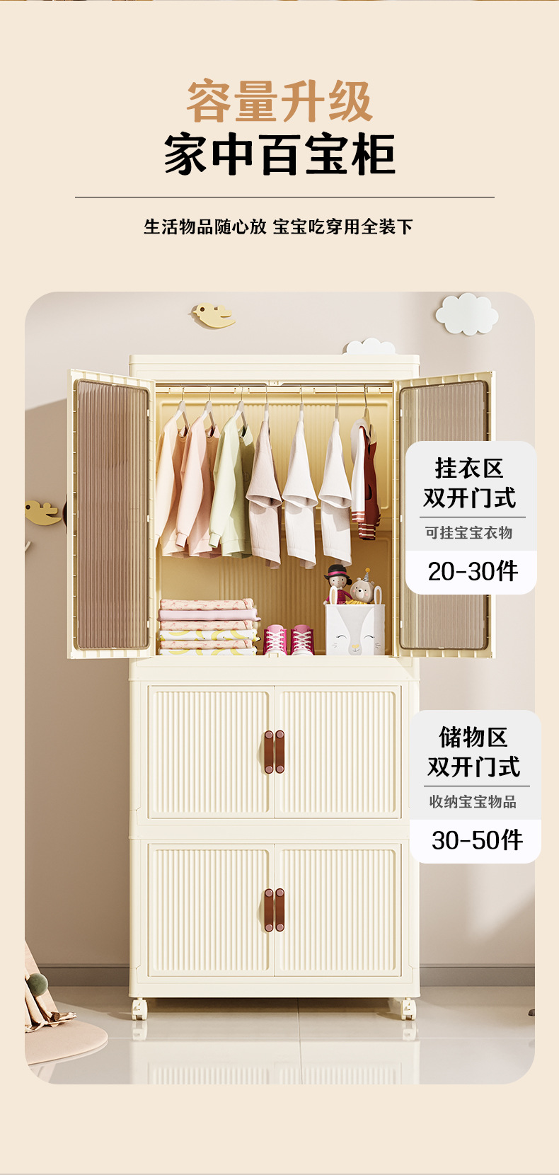 • 65면 와이드 2층 옷장 + 접이식 캐비닛