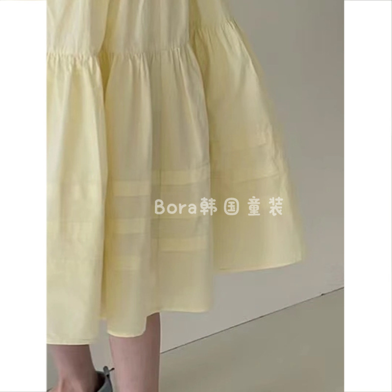 여아 드레스 어린이 치마 여름옷 2025 신상 큰 아이들 노란색 세련된 아기 무릎 위까지 오는 시원한 공주 드레스