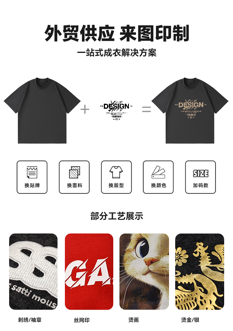 대외 무역 유행 브랜드 작은 목 유럽 크기 어깨 면 티셔츠 거리 스타일 INS 느슨한 면 라운드 넥 짧은 소매 남성