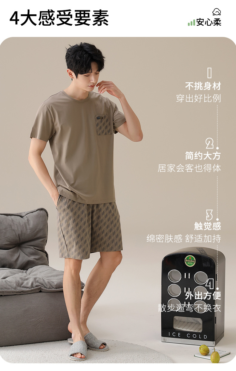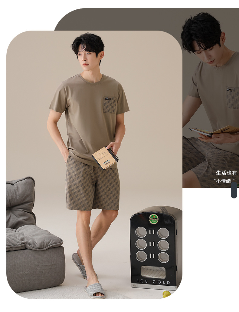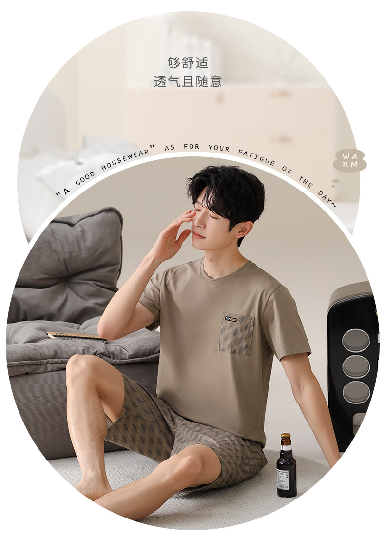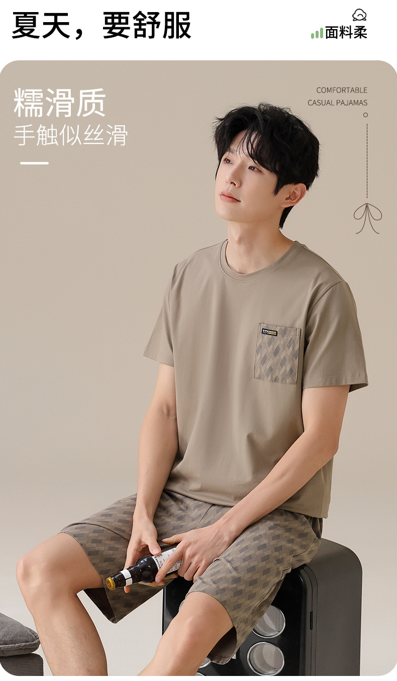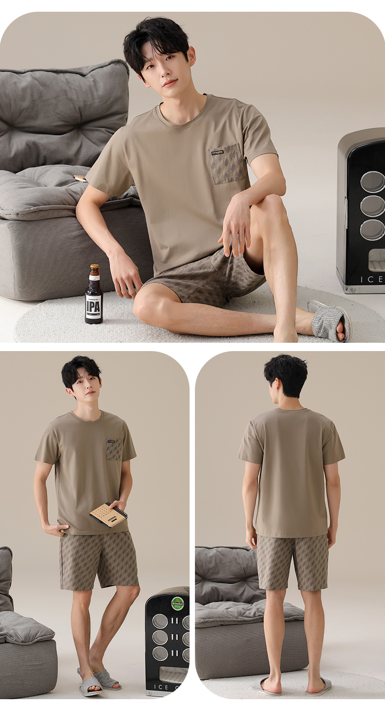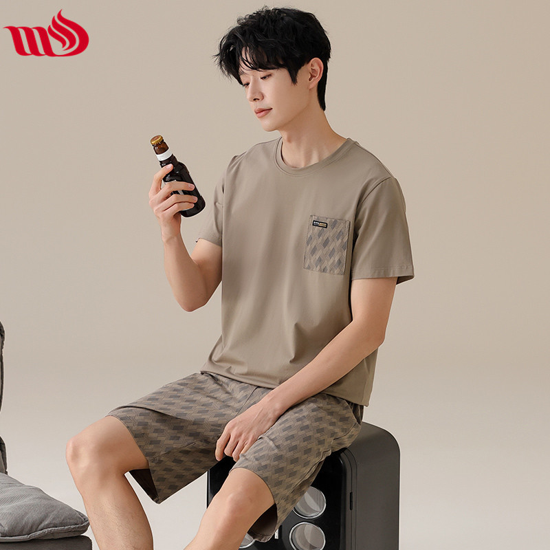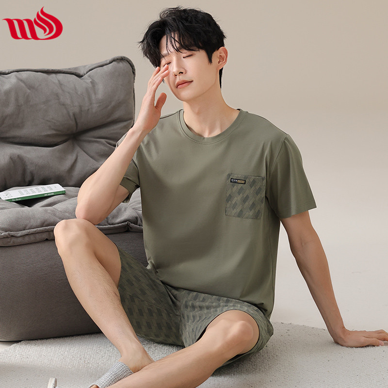 물롱 귀족 가족 잠옷 남성용 라이크라 코튼 얇은 여름 반팔 반바지 플러스 사이즈 스포츠 캐주얼 아웃웨어 홈 의류스토어 가기