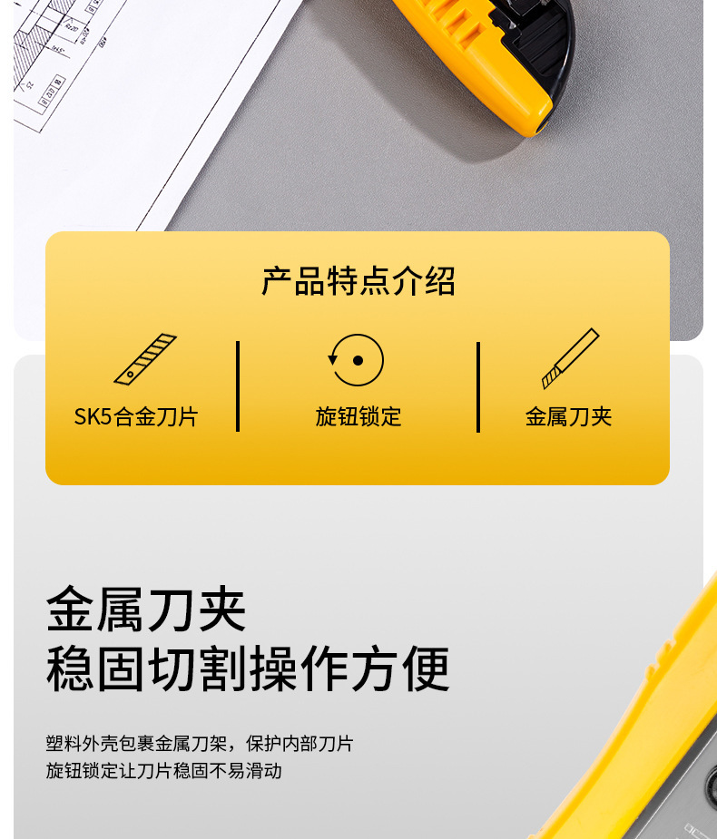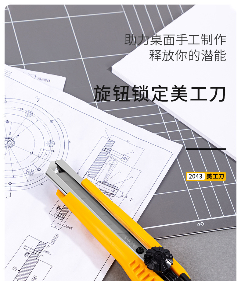 델리 아트 나이프 산업용 2043 대형 사무실 종이 커터 벽지 커터 회전 잠금 종이 커터 도구