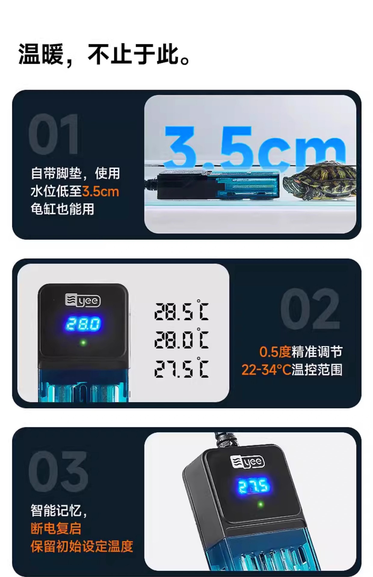 Yee 물고기 탱크 가열 막대 자동 일정한 온도 절전 히터 거북이 가열 막대 ptc 수족관 가변 주파수 전기 가열 막대스토어 가기