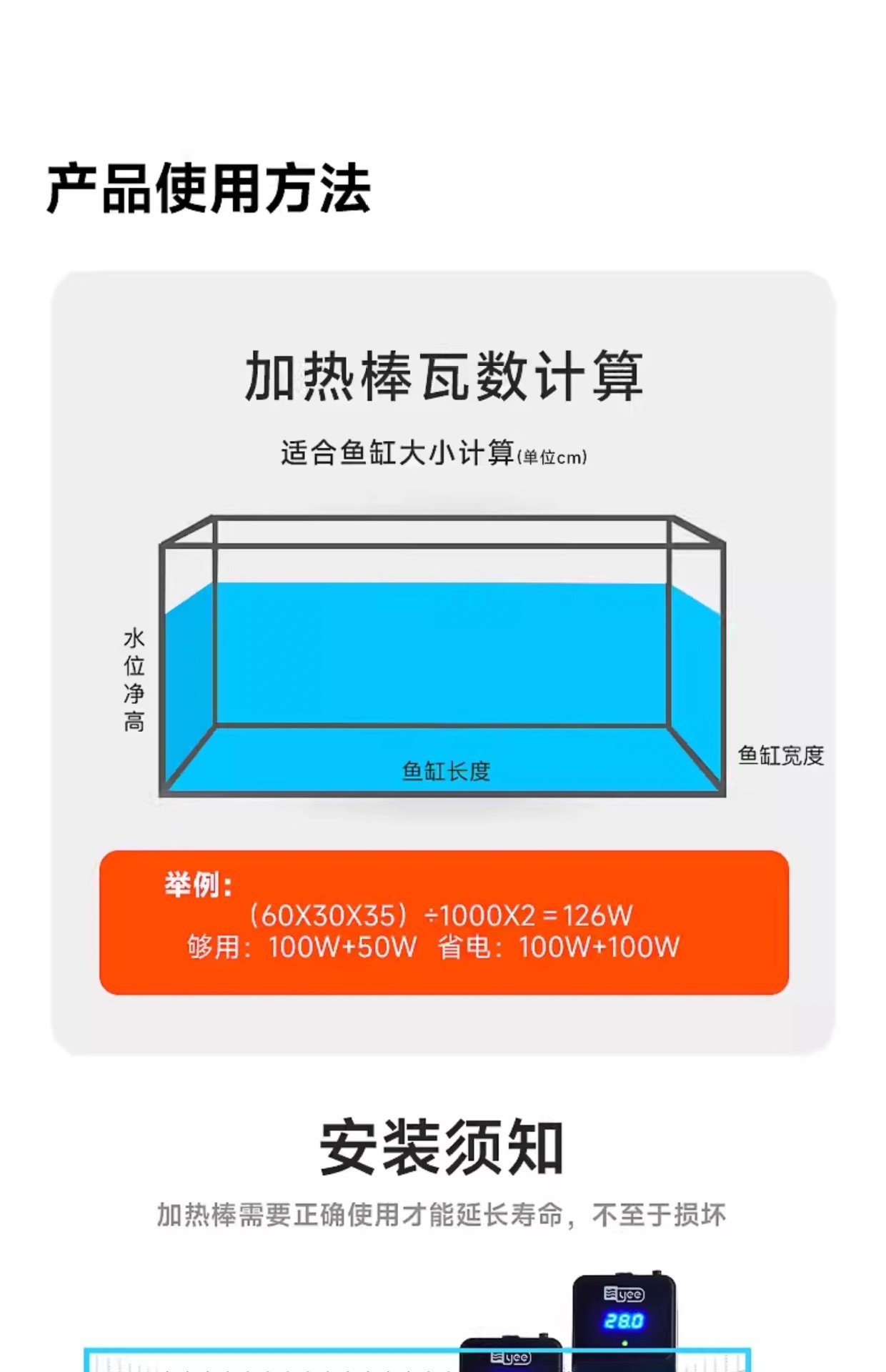 • 【0.1℃정밀한 온도 조절] 50w/권장 30-40cm 실린더