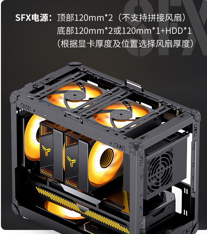 乔思伯(JONSBO)C6 MAX 手提式MATX机箱(侧透/四面MESH板/5风扇位/SFX/ATX电源/≤170mm散热器/335mm显卡)