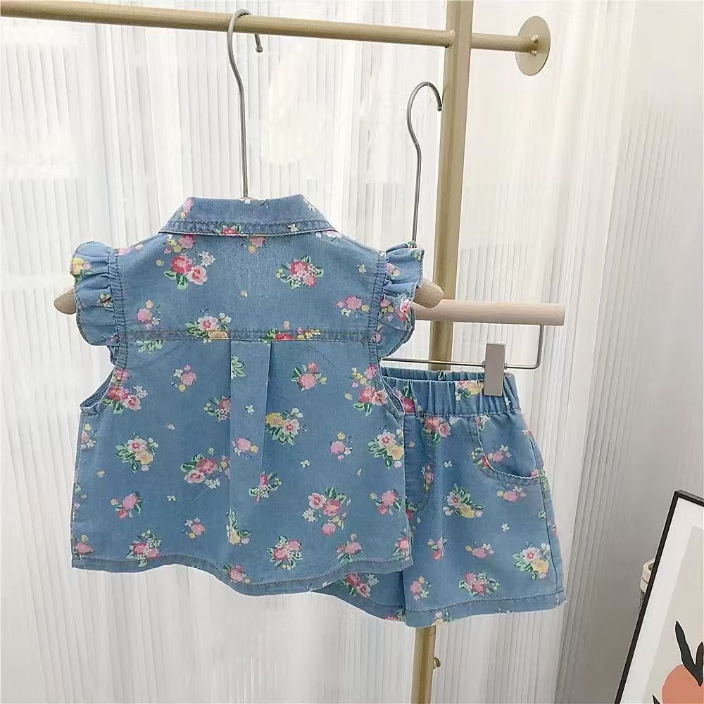 2025 새로운 소녀 여름 유행 데님 세트 여성 아기 한국 반바지 얇은 여름 투피스 세트스토어 가기