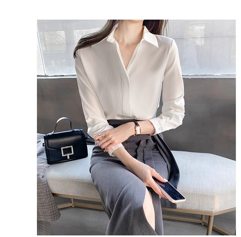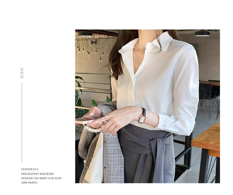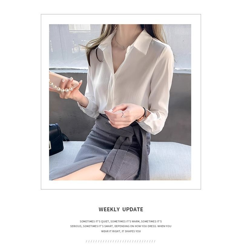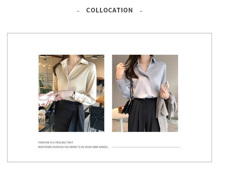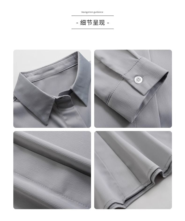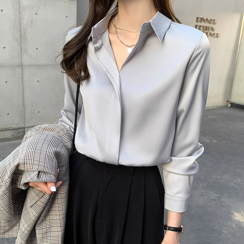 회색 파란색 새틴 프랑스 셔츠 여성의 2024 봄과 가을 긴 소매 다크 플래켓 커밍 우아한 전문 원피스 셔츠스토어 가기