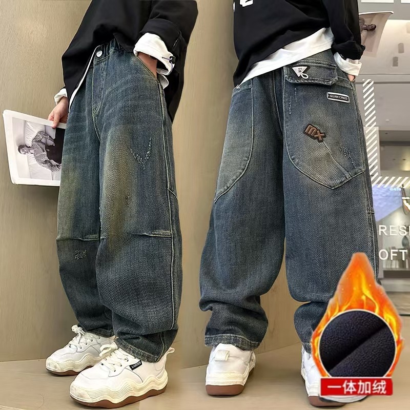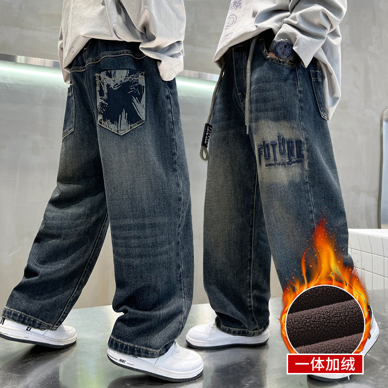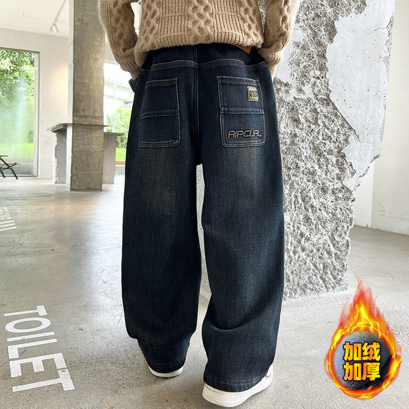 소년 봄 청바지 봄 가을 겨울 2025 새로운 어린이 겨울 기모 두꺼운 캐주얼 소년