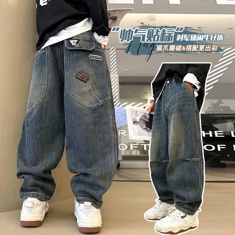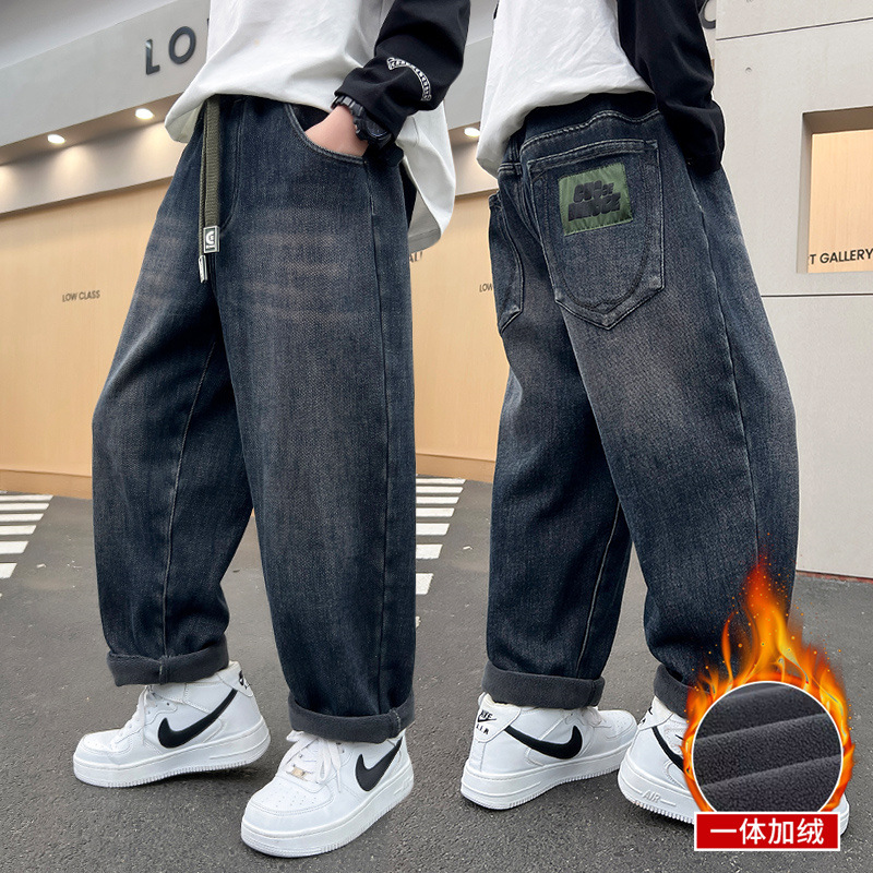 소년 봄 청바지 봄 가을 겨울 2025 새로운 어린이 겨울 기모 두꺼운 캐주얼 소년스토어 가기