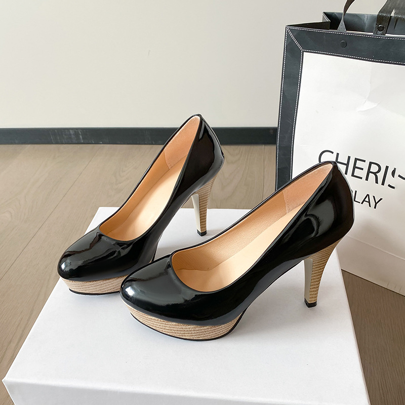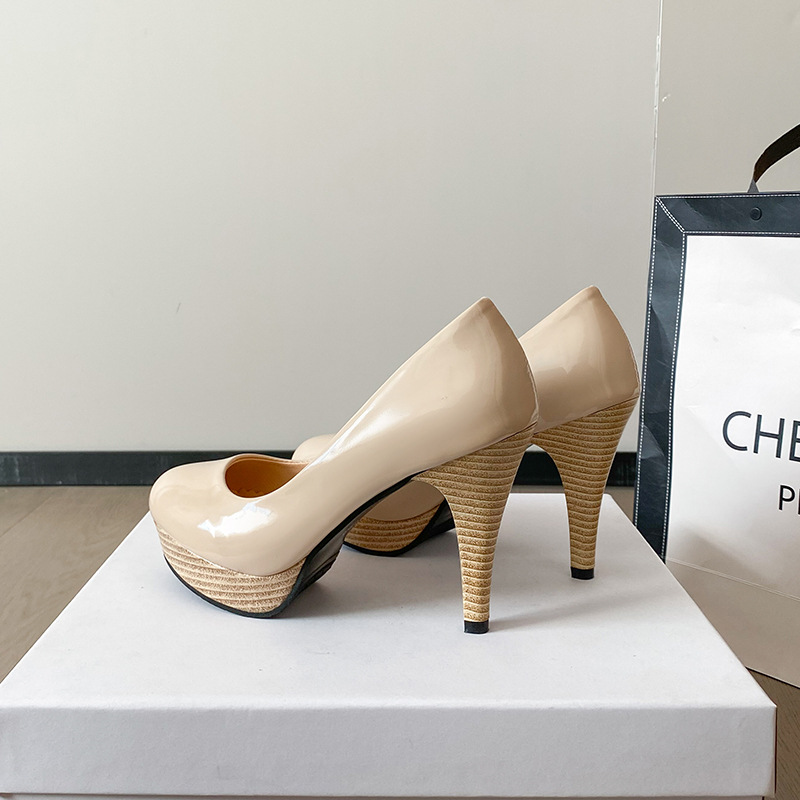 2025 유럽과 미국의 대외 무역 새로운 여성 신발 나뭇결 방수 플랫폼 낮은 입 하이힐 컬러 매칭 신발 패션 섹시