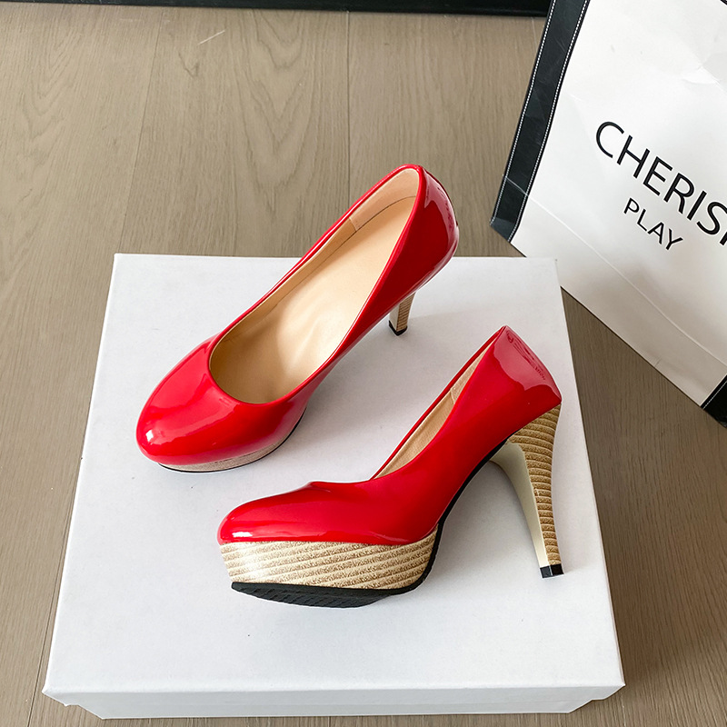 2025 유럽과 미국의 대외 무역 새로운 여성 신발 나뭇결 방수 플랫폼 낮은 입 하이힐 컬러 매칭 신발 패션 섹시스토어 가기