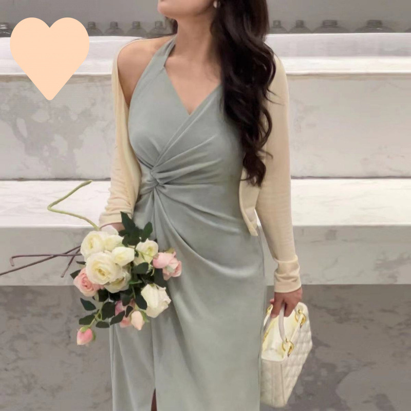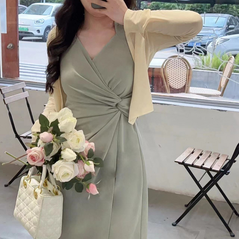 여름 새로운 플러스 사이즈 여성의 우아한 중국 레트로 넥 슬림 핏 원피스 카디건 투피스 세트스토어 가기
