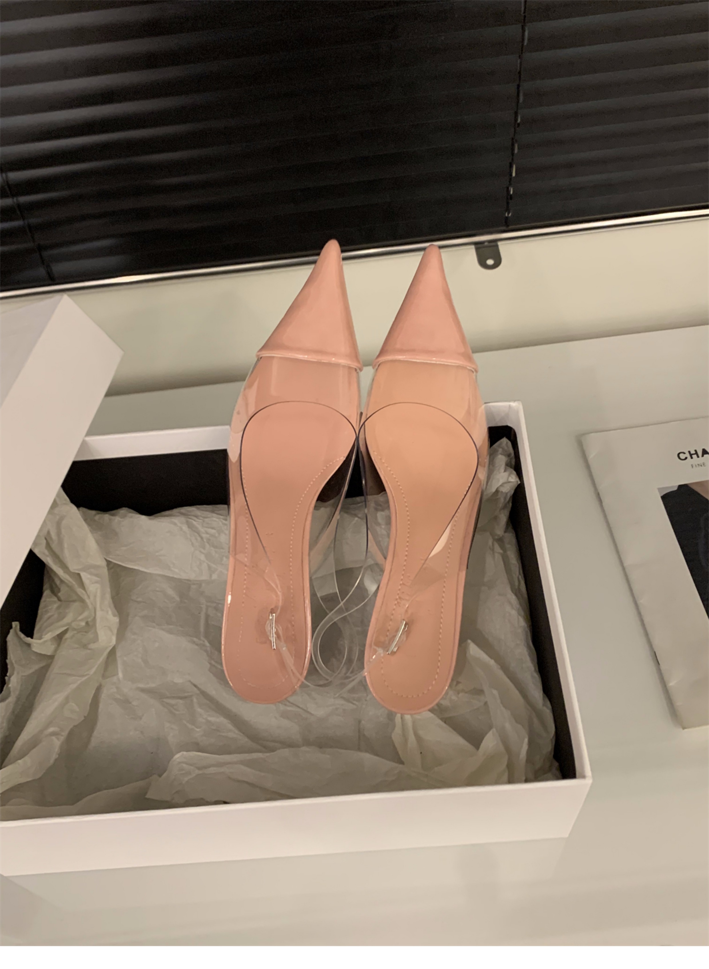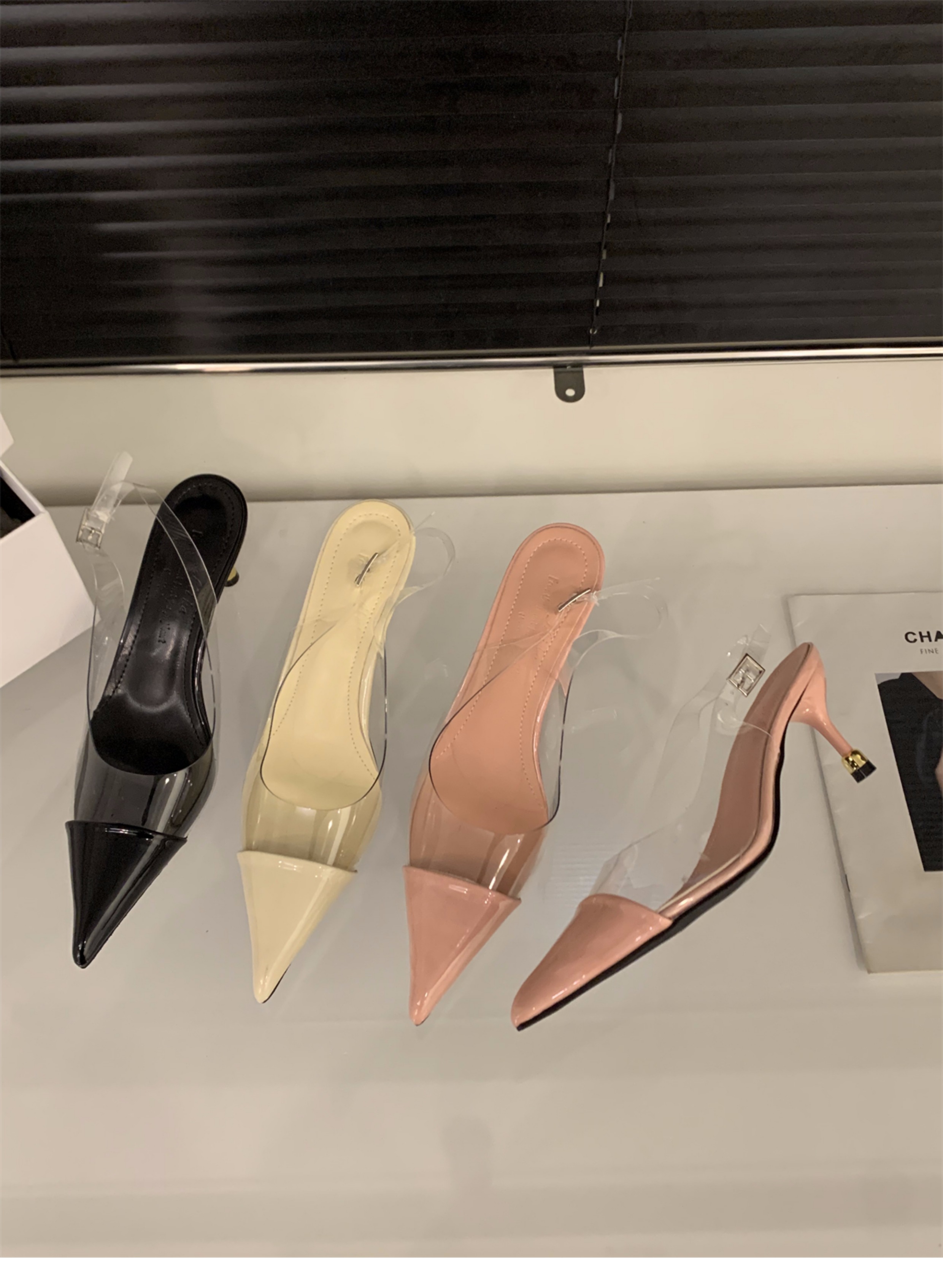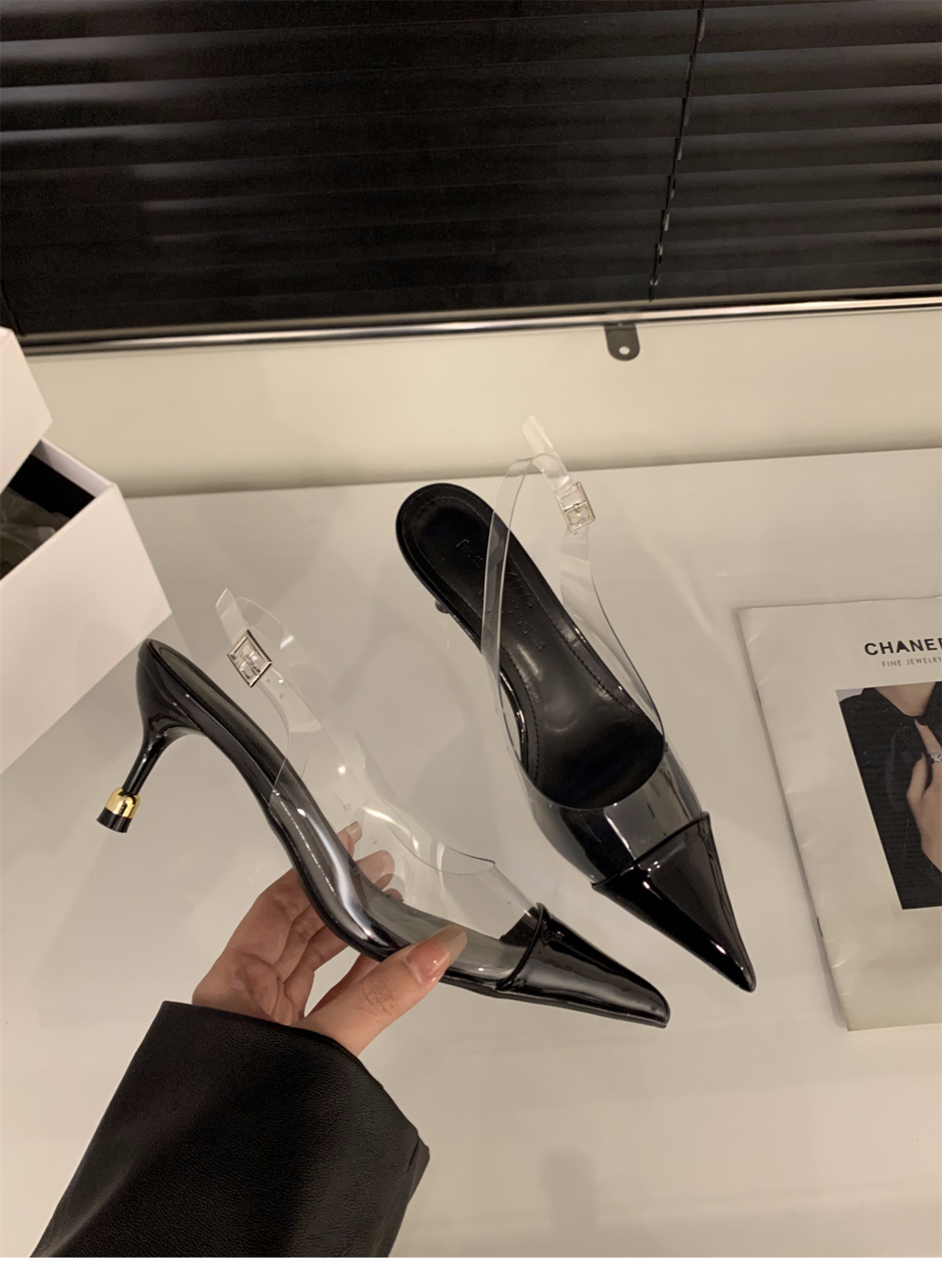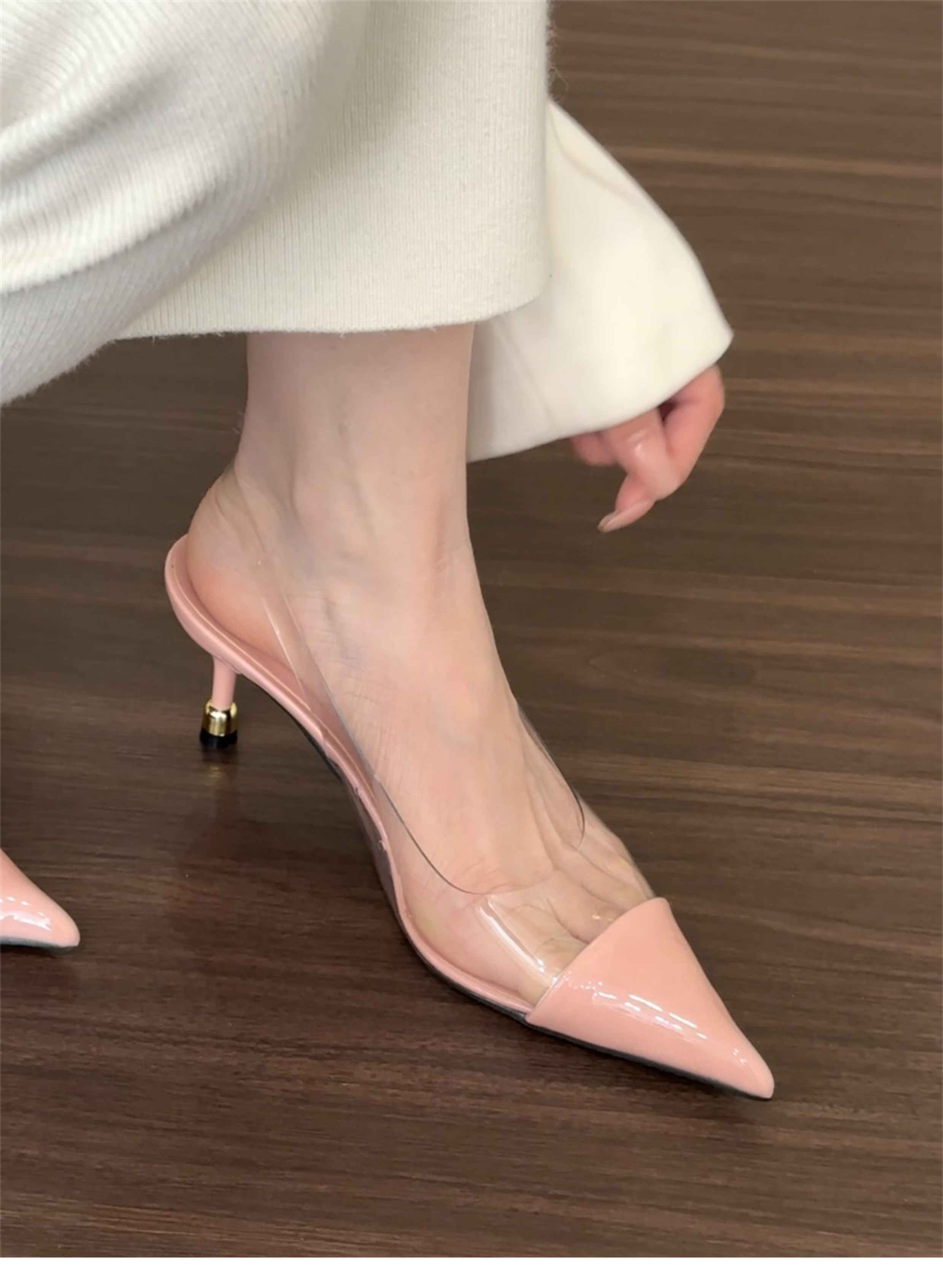 프랑스 뾰족한 하이힐 투명 샌들 발가락 요정 신발 2025 봄과 여름 우아한 스커트 신발스토어 가기