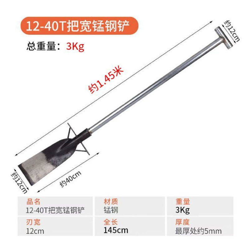 • 40*12 직선 손잡이가 있는 망간강 삽의 무게는 약 2.6kg 입니다.