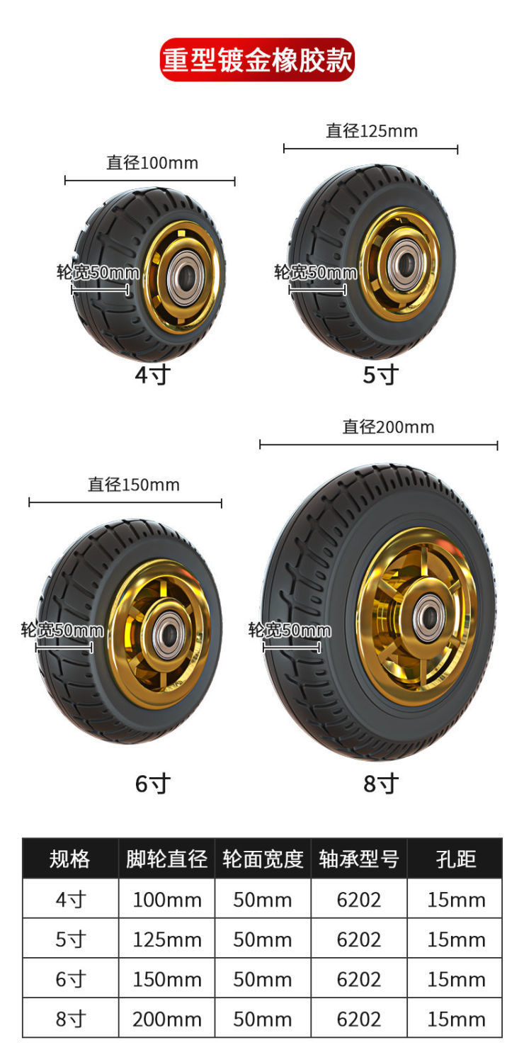 • 단일 휠 골드 고무 휠 - 8inch (헤비 듀티)