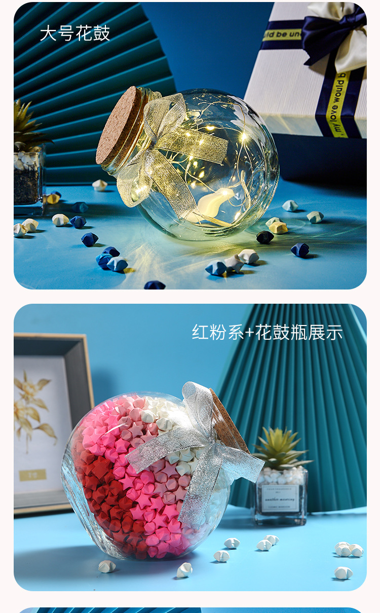 유리 병 항아리 코르크 소원 표류 행운의 별 병 쉘 병 장식품 종이 접기 완성 생일 선물