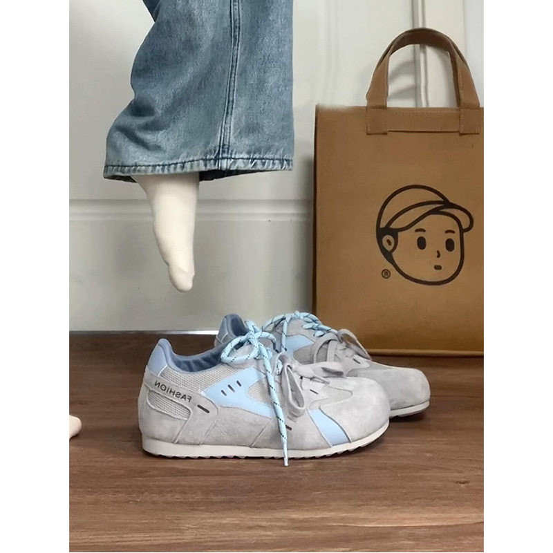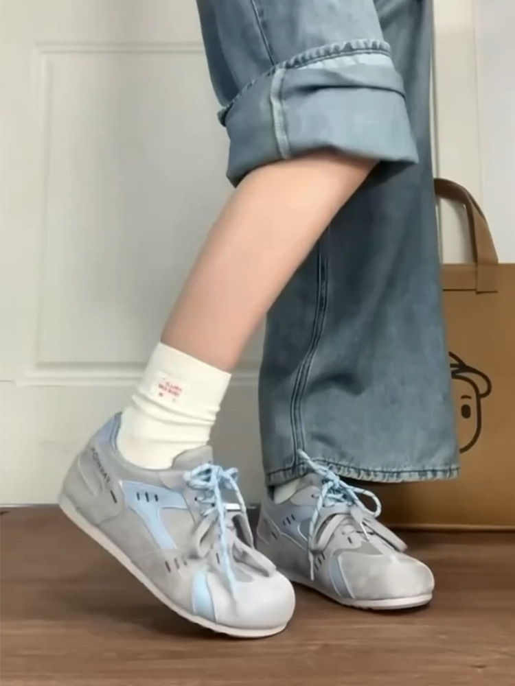 한국 경량 독일 연수화 여성 2025 봄 새 레트로 메쉬 라운드 발가락 포섭 검프 신발 패션 캐주얼 운동화