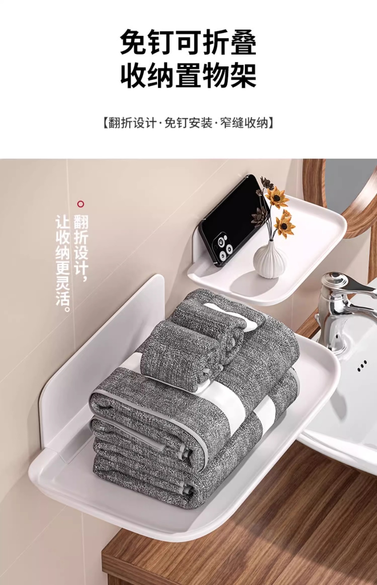접이식 벽 랙 화장실 욕실 기숙사 침구 구멍이없는 벽걸이 형 다기능 스토리지 랙