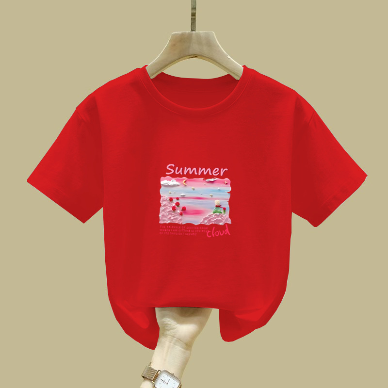 2348 # 아동복 어린이 중 · 대형 어린이 여름 티셔츠 여름 반소매 반소매 소년 여름 면화 소녀 용 티셔츠