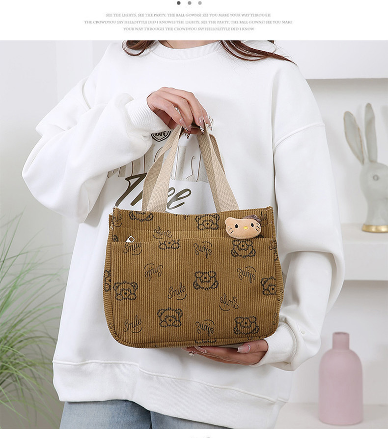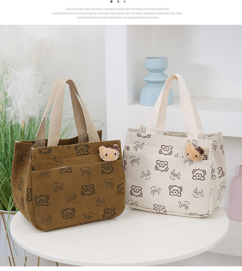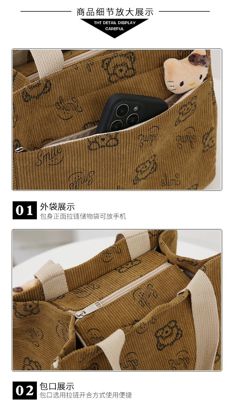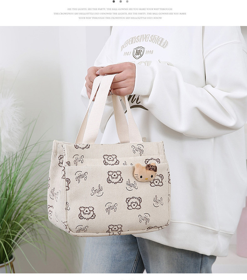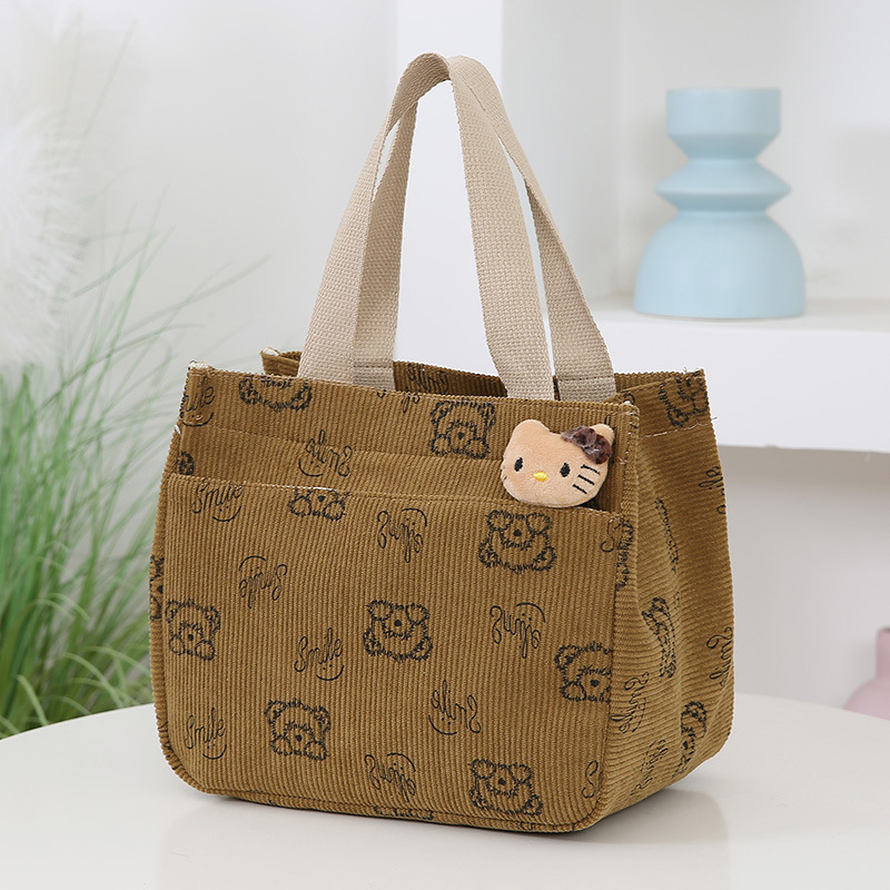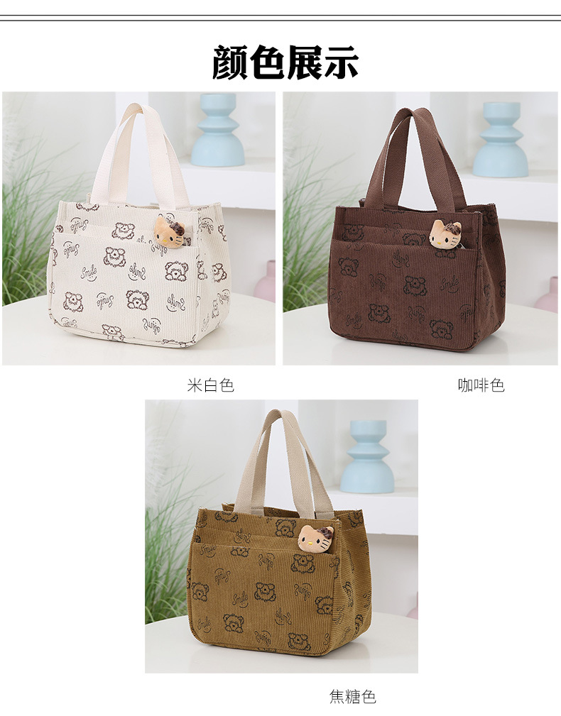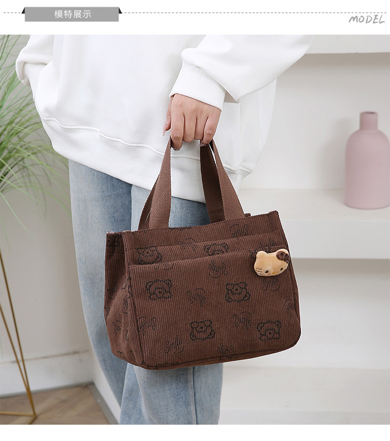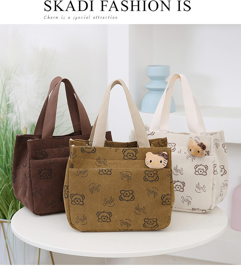 새로운 대용량 핸드백 여성 패션 Corduroy Baoma 외곽 학생 도시락 가방 간단한 작업 천 가방 트렌디