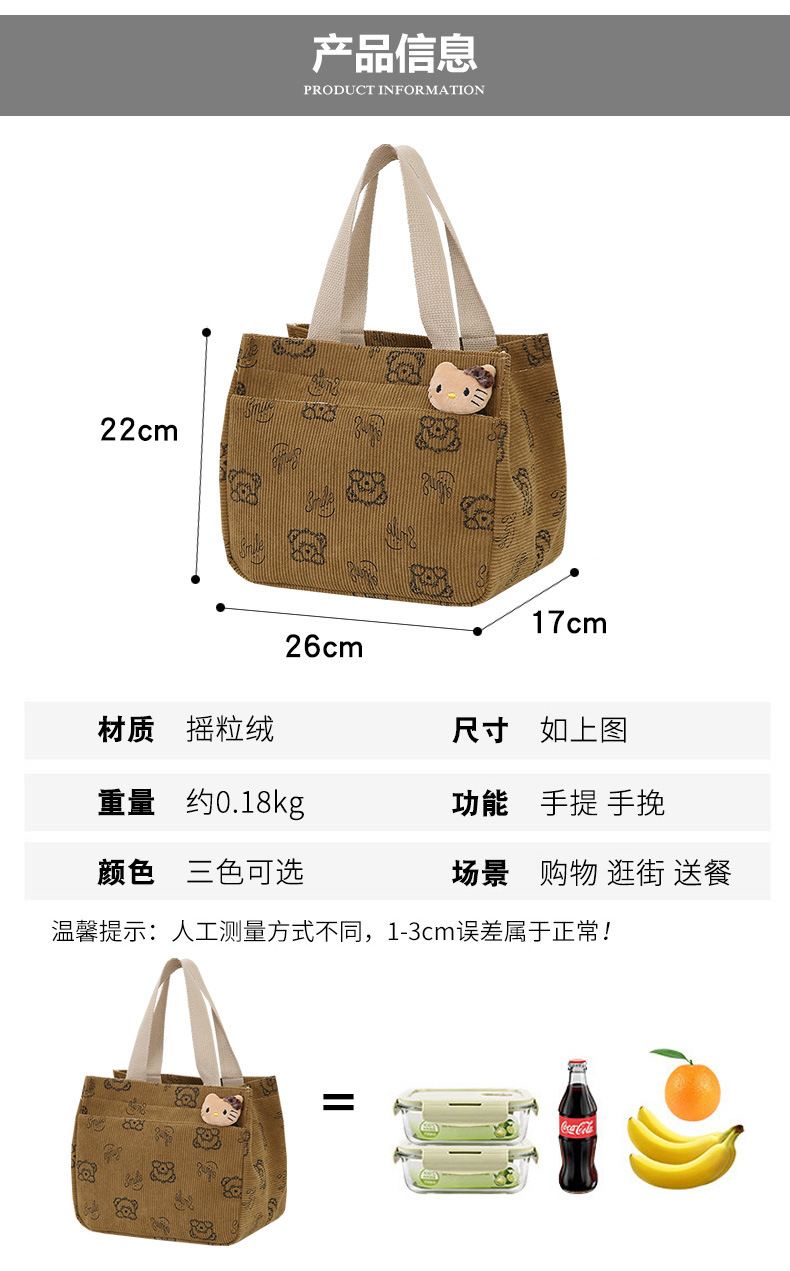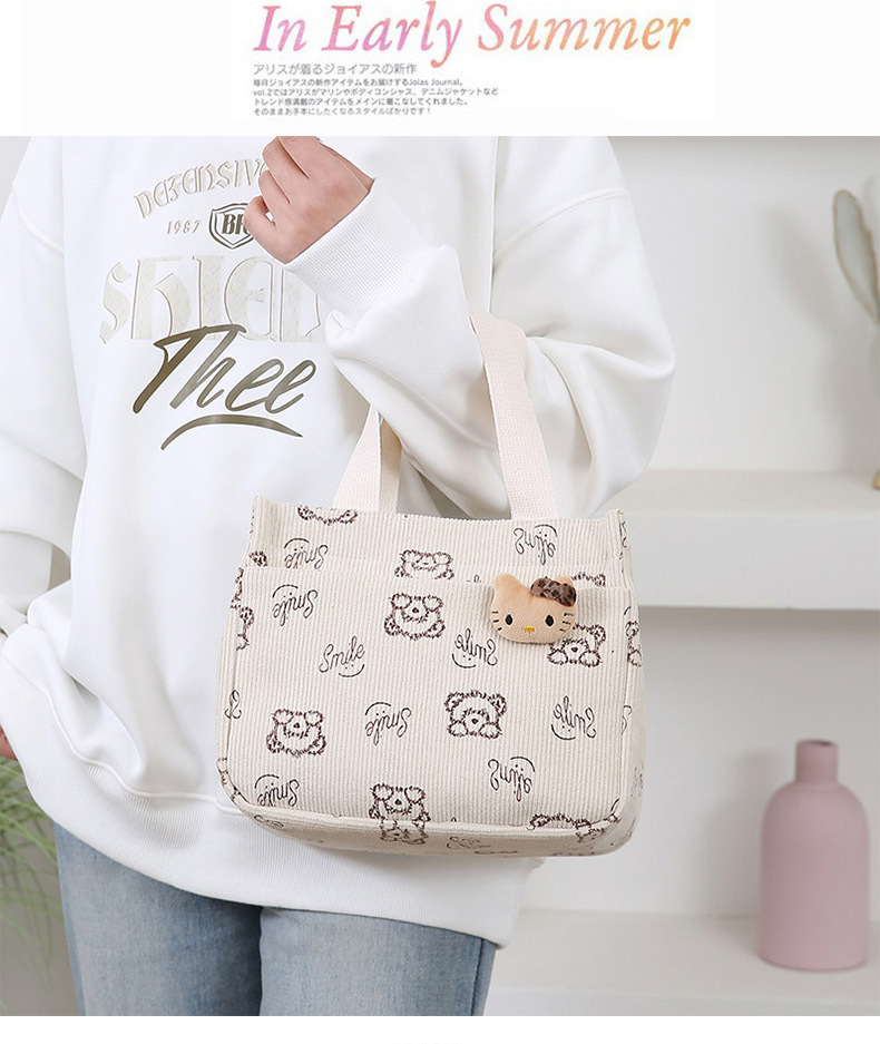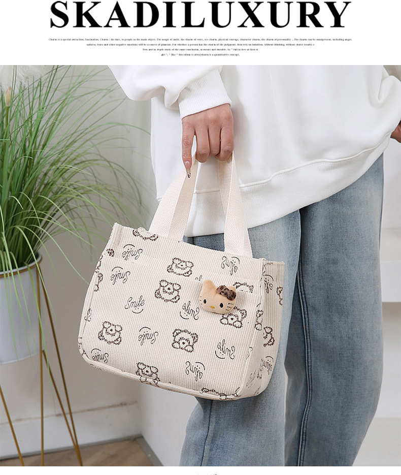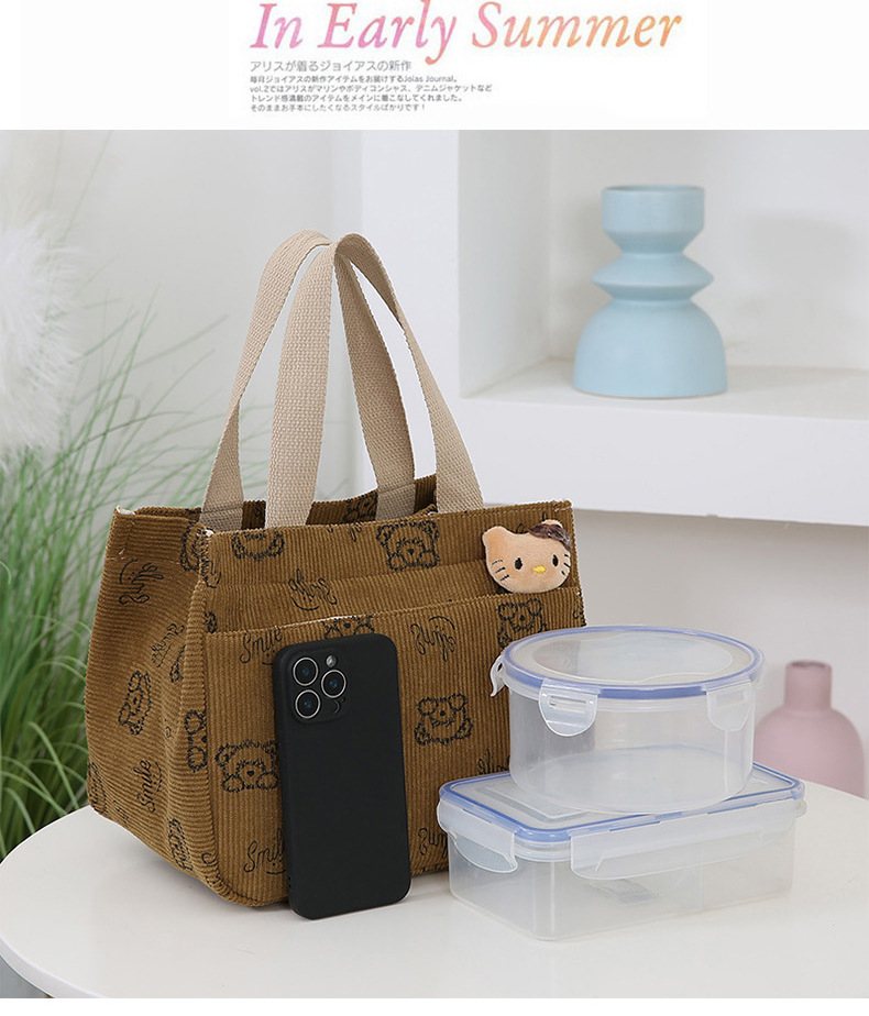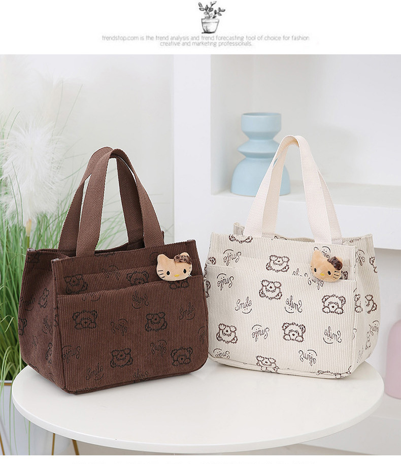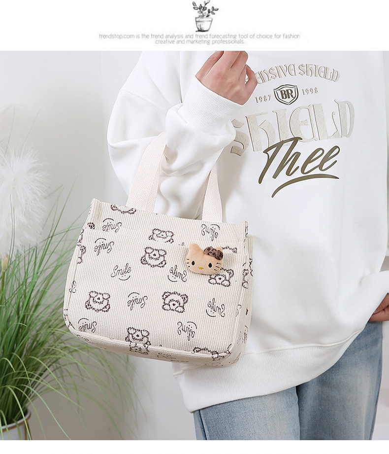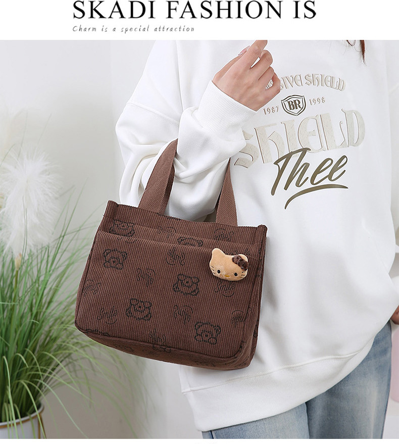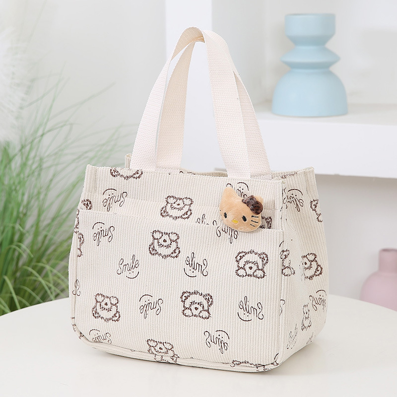 새로운 대용량 핸드백 여성 패션 Corduroy Baoma 외곽 학생 도시락 가방 간단한 작업 천 가방 트렌디