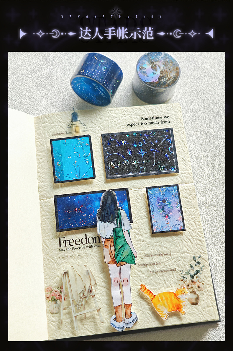 케첩 소녀는 별 시리즈 핫 실버 테이프 손 계정 소재 콜라주 유럽 백킹 레트로 DIY6 를 본다