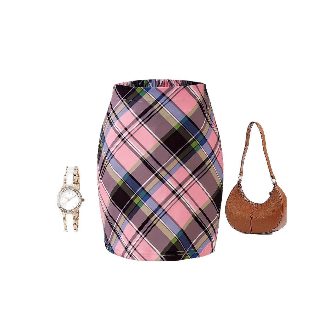 유럽풍 아동복 여아 체크무늬 스커트 2025 봄여름 홍콩풍 핑크 스커트 큰아이 A라인 스커트 여아 중대형 아동용스토어 가기
