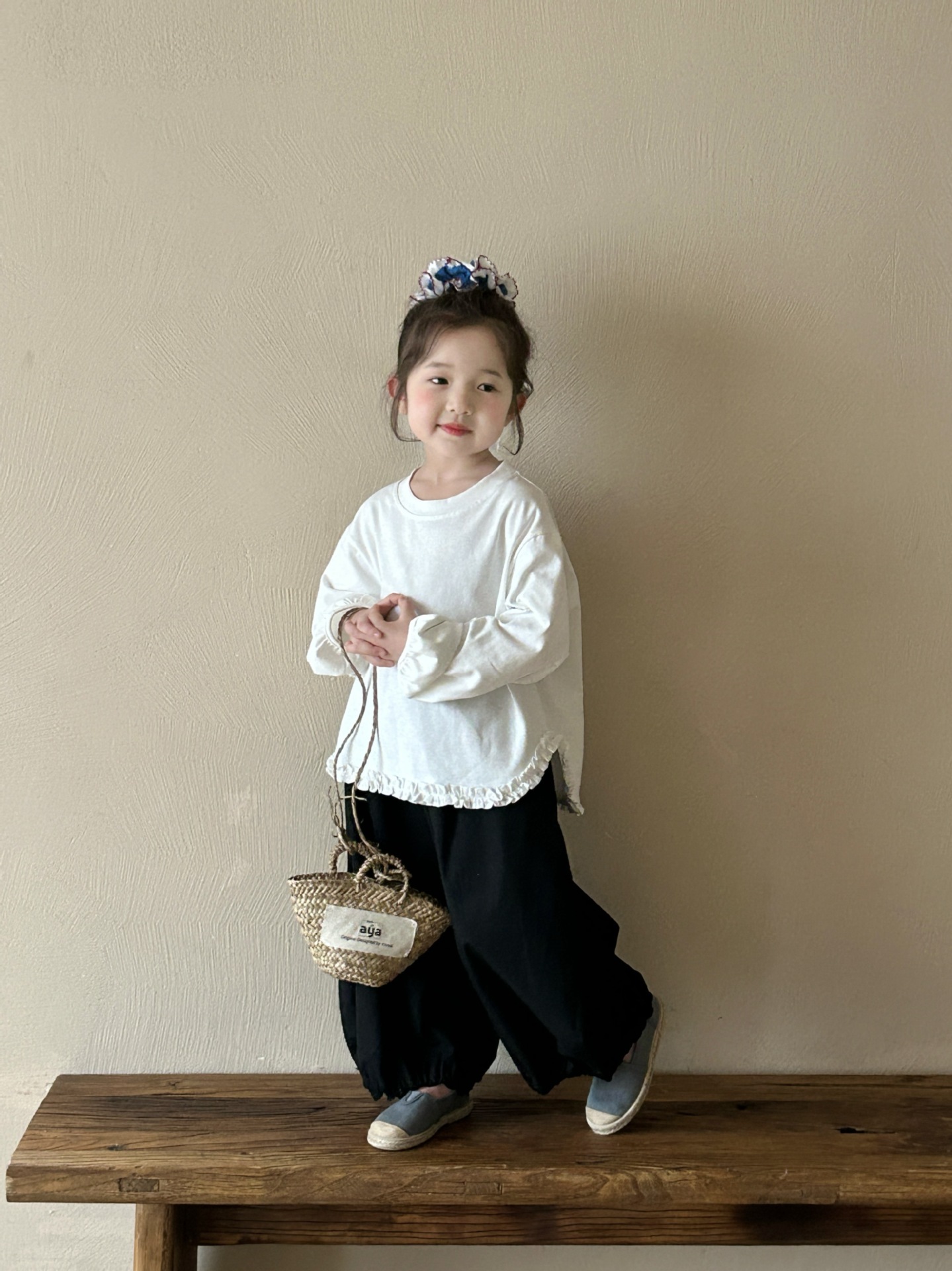 2025 새로운 가을 아동복 한국 스타일 아동복 소녀 디자인 곰팡이 가장자리 라운드 넥 흰색 티셔츠 다목적 스타일스토어 가기