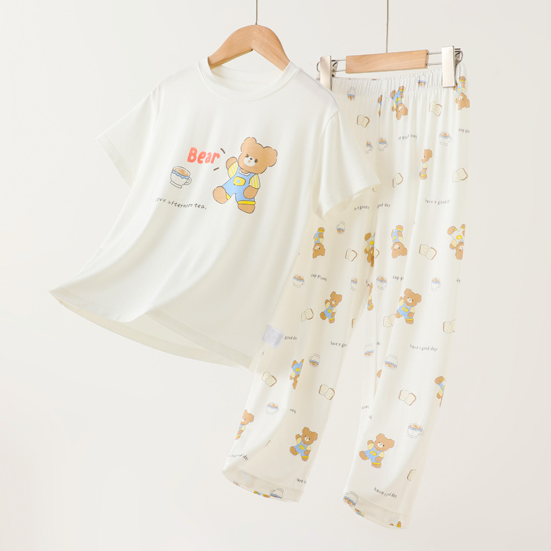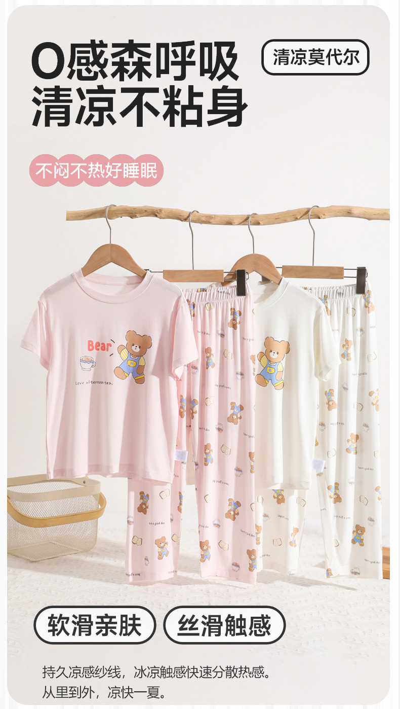 60S Lanjing Modal Girls 홈 의류 어린이 잠옷 여름 얇은 세트 클래스 큰 어린이를위한 만화 에어컨 옷스토어 가기