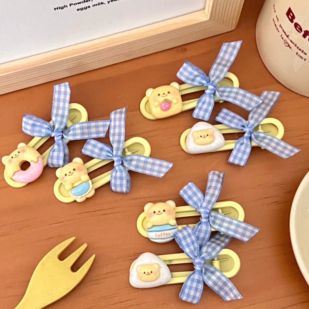새로운 귀여운 우유 노란 곰 나비 머리핀 세트 소녀 조커 달콤한 깨진 머리 앞머리 클립 사이드 클립 도매