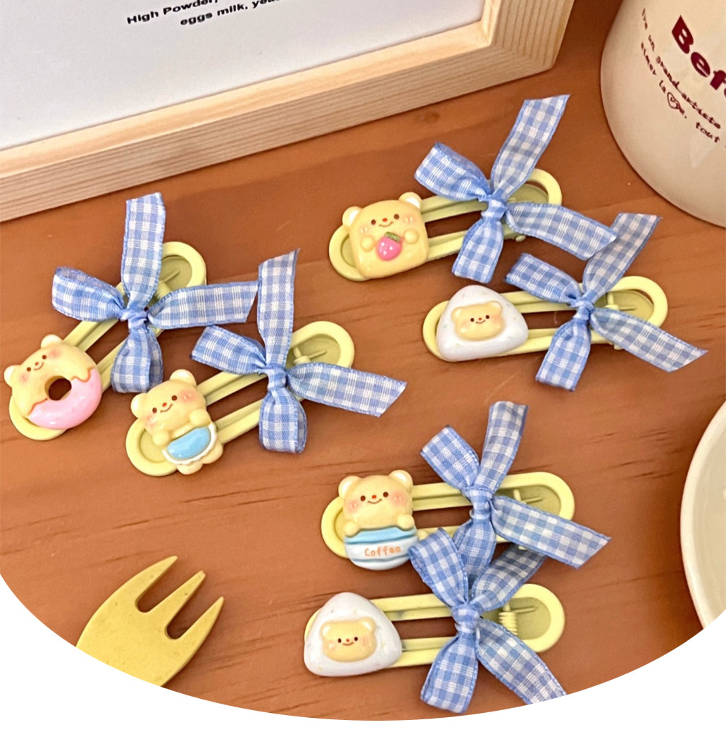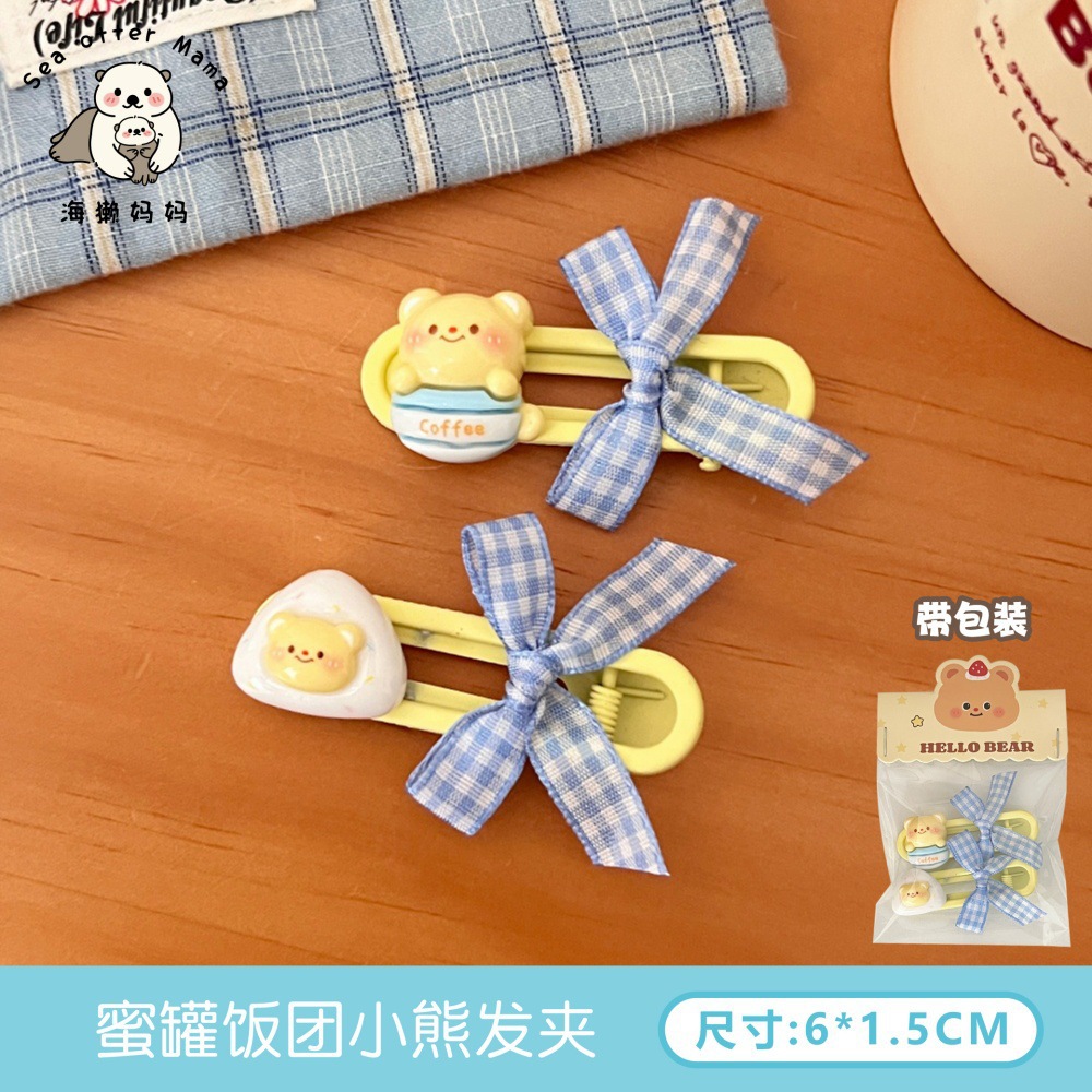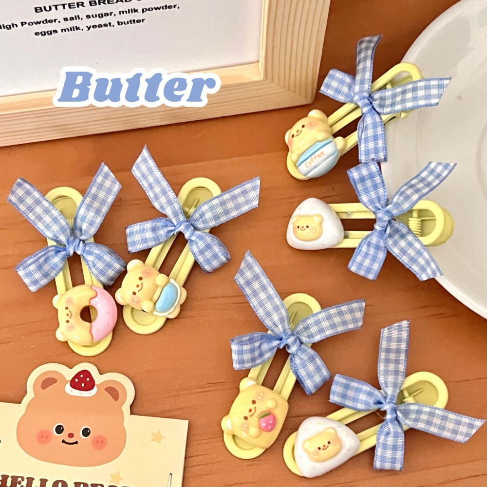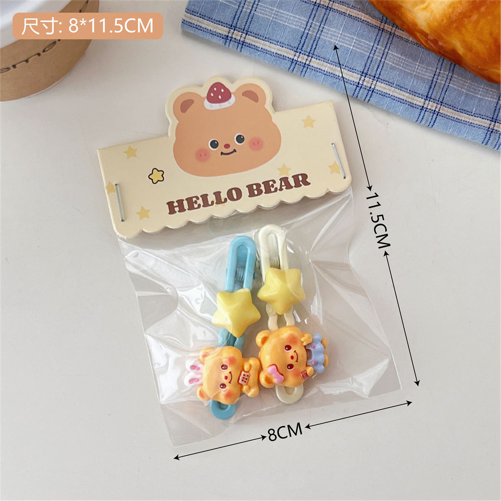 새로운 귀여운 우유 노란 곰 나비 머리핀 세트 소녀 조커 달콤한 깨진 머리 앞머리 클립 사이드 클립 도매스토어 가기