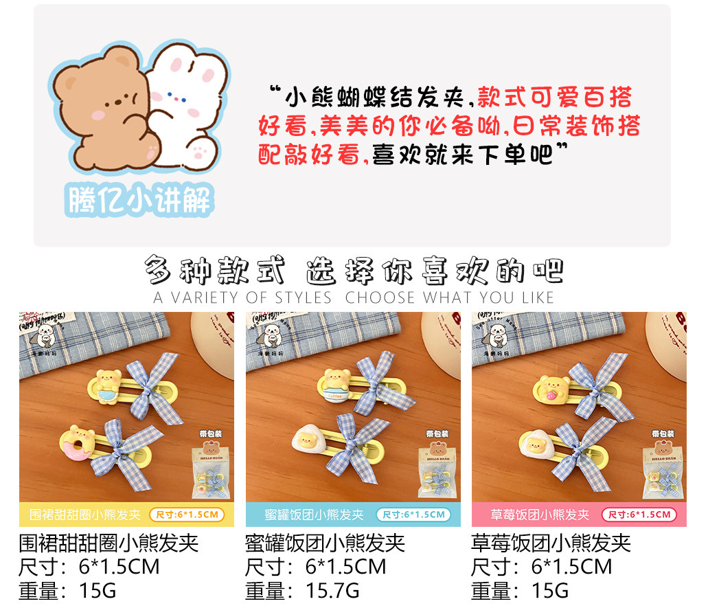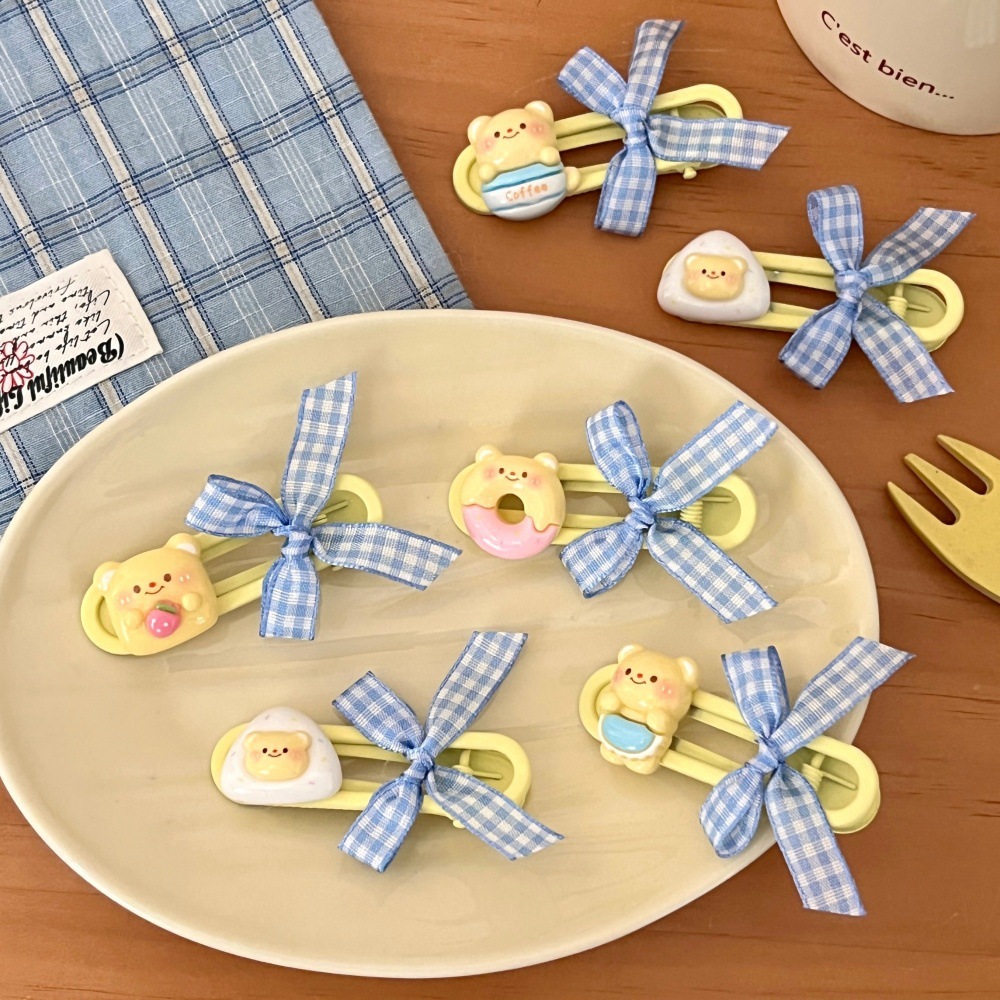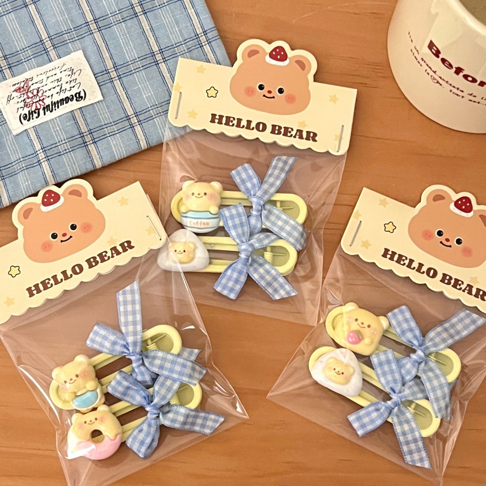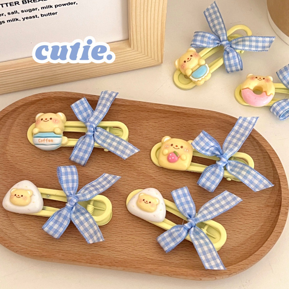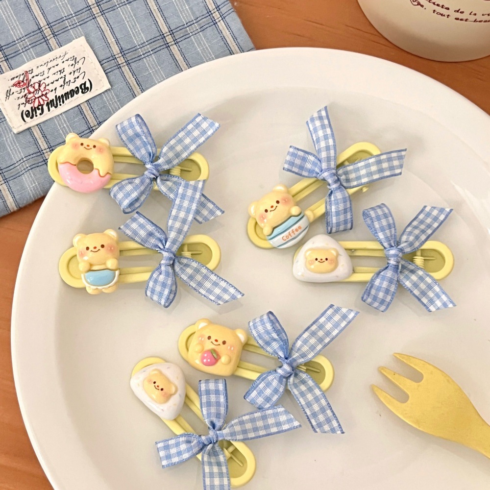 새로운 귀여운 우유 노란 곰 나비 머리핀 세트 소녀 조커 달콤한 깨진 머리 앞머리 클립 사이드 클립 도매스토어 가기