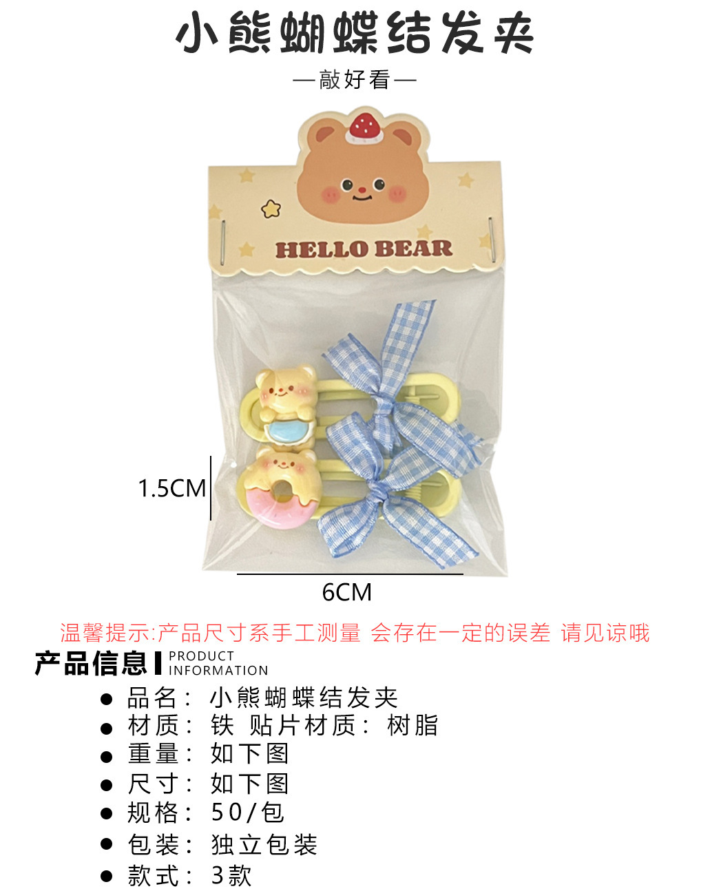 • 4#귀여운 커스터드곰 머리끈 머리핀-B