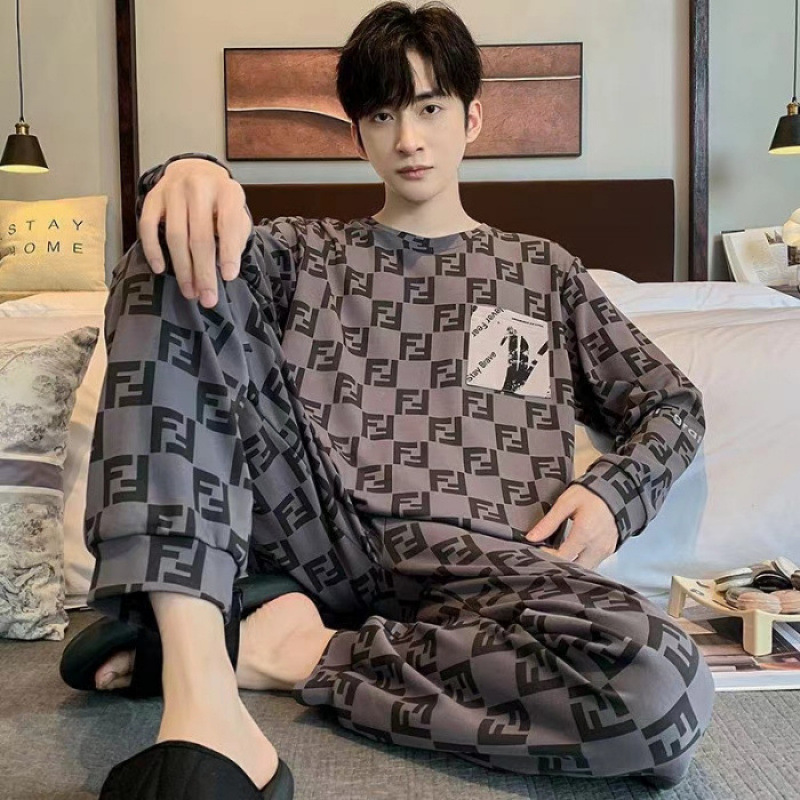 대외 무역 잠옷 남자 긴팔 바지 봄 가을 간단한 캐주얼 청소년 남자 겨울 홈 의류 세트 착용스토어 가기