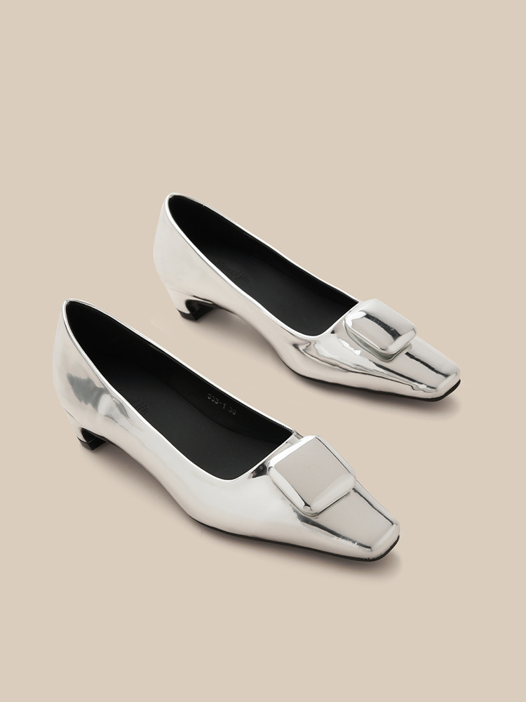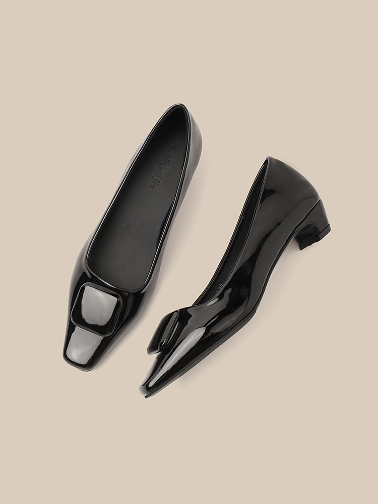 공장 직판 신상 스퀘어토 미들힐 얕은 굽 슬립온 슈즈, 스퀘어 버클 다용도 출퇴근용 메리제인 여성화스토어 가기
