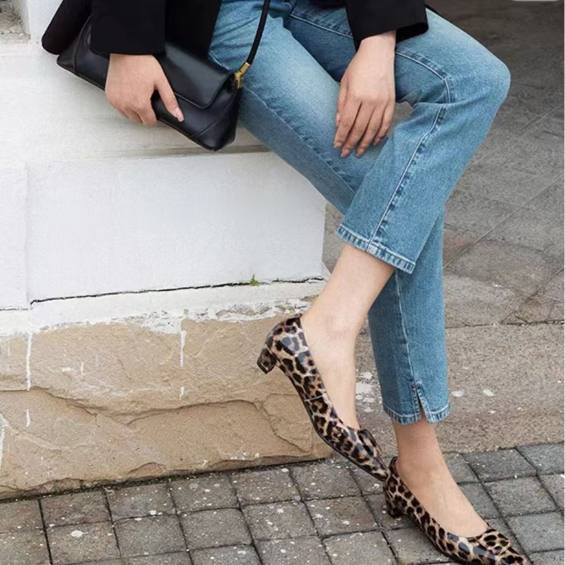 공장 직판 신상 스퀘어토 미들힐 얕은 굽 슬립온 슈즈, 스퀘어 버클 다용도 출퇴근용 메리제인 여성화