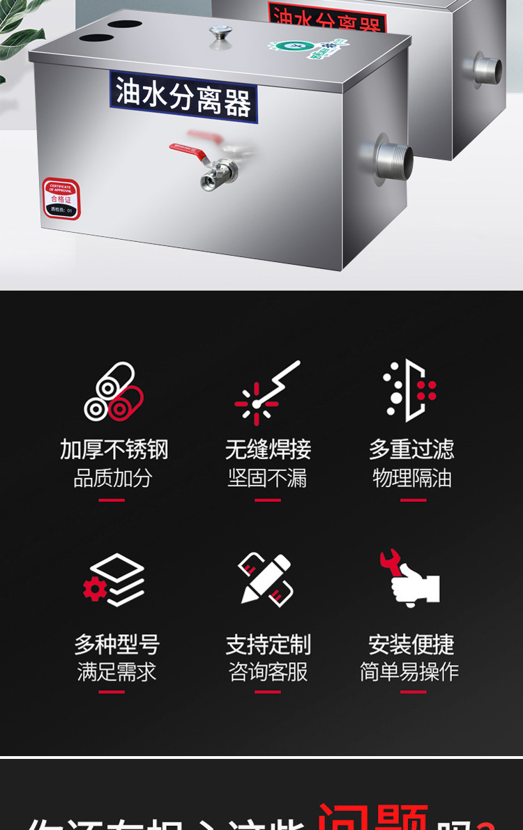 오일 워터 분리기 주방 케이터링 필터 상업용 스테인리스 냄비 물 오일 필터 프로젝트 오일 분리기